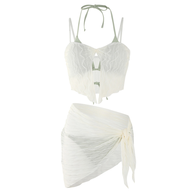 新款热销泳衣女性感比基尼少女甜辣纯色高级分体四件套沙滩泳装