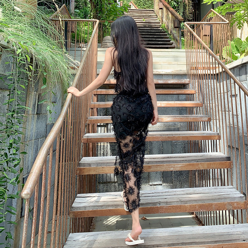 黑色条纹吊带睡裙女夏季纯棉薄款纯欲风可外穿大码家居服睡衣夏天