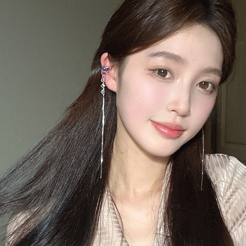 小众高级感气质彩色锆石流苏耳夹无女耳洞轻奢百搭长款耳骨夹耳饰