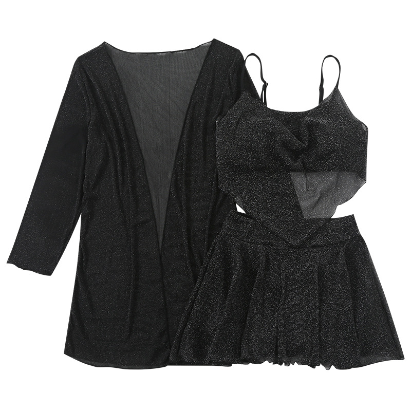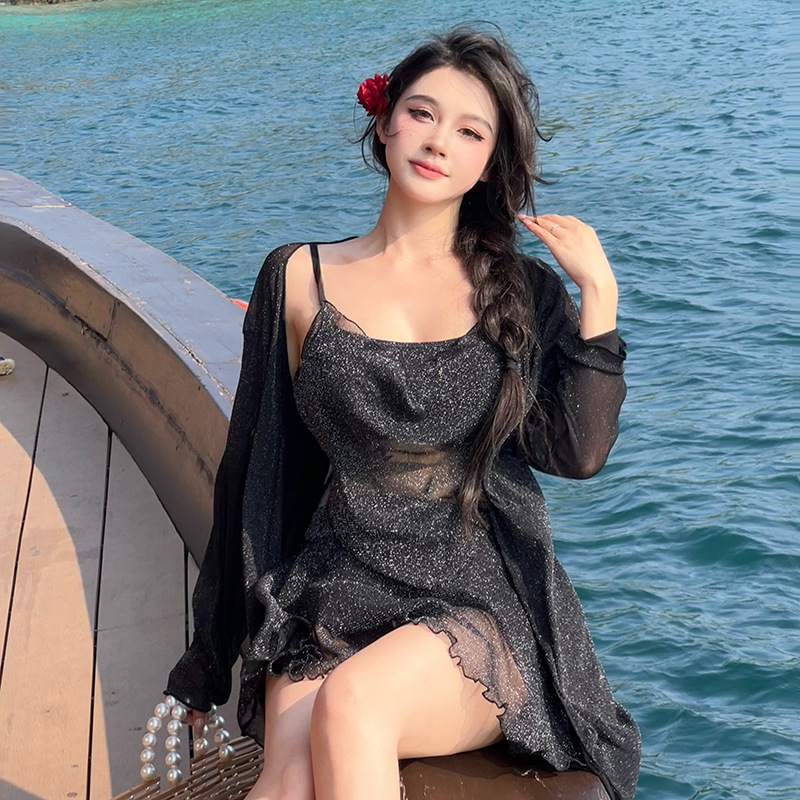 新款热销泳衣女性感纯色长袖防晒高级纯欲美背分体三件套沙滩泳装