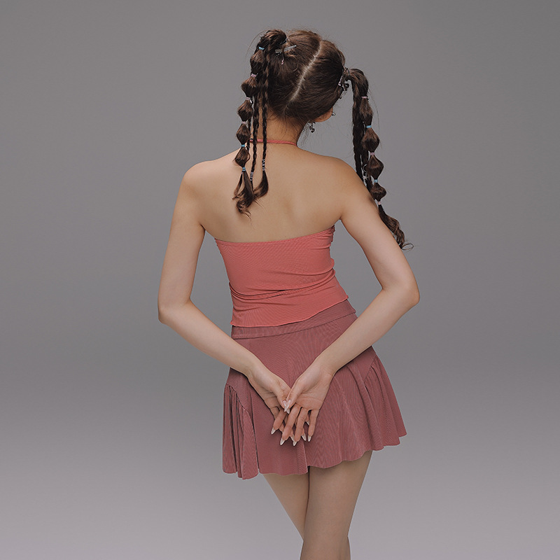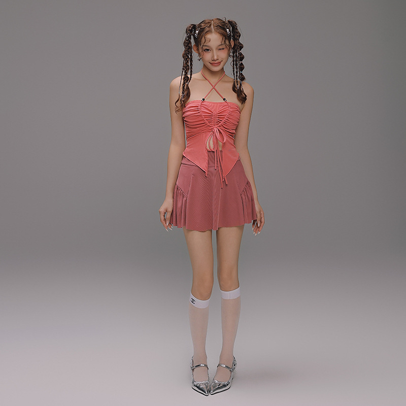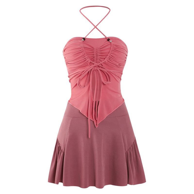 新款泳衣女法式小众辣妹露肩性感挂脖修身遮肚显瘦学生沙滩泳装
