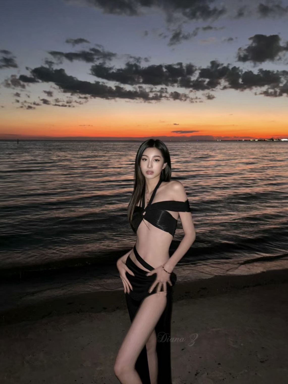 新款泳衣女气质女神性感挂脖一字肩女神范遮肉显瘦沙滩泳装