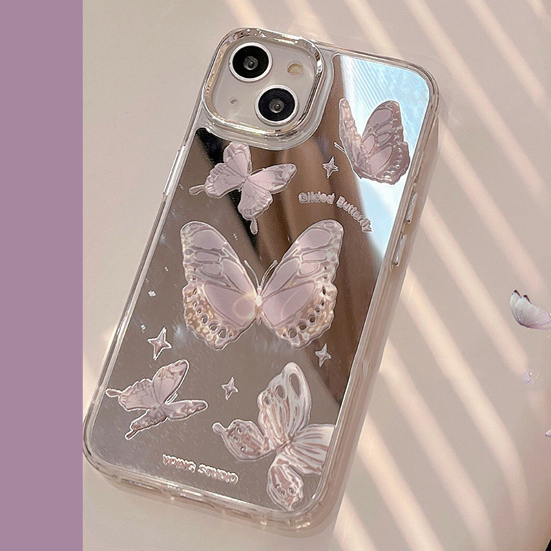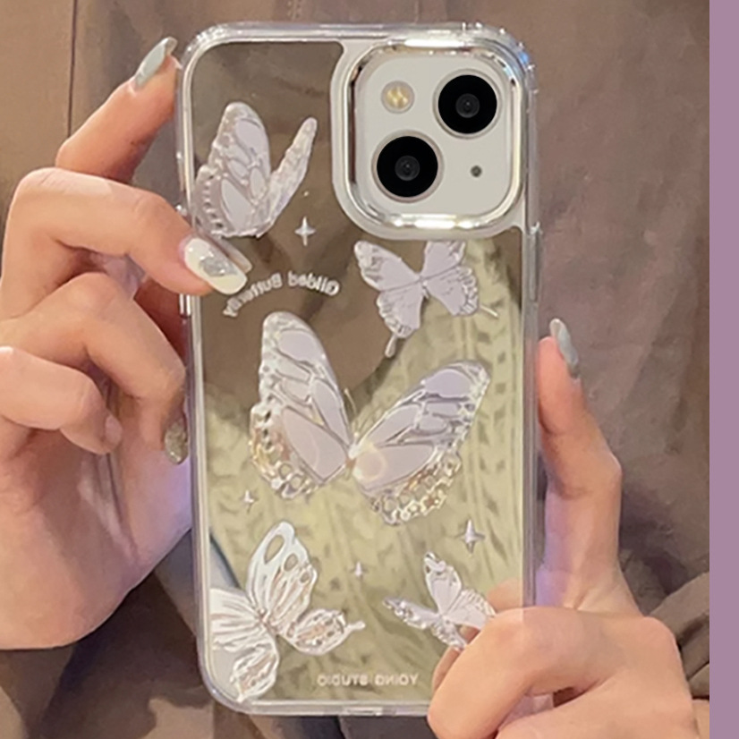 ins抽象蝴蝶苹果14ProMax镜面手机壳iPhone13简约12/11高级