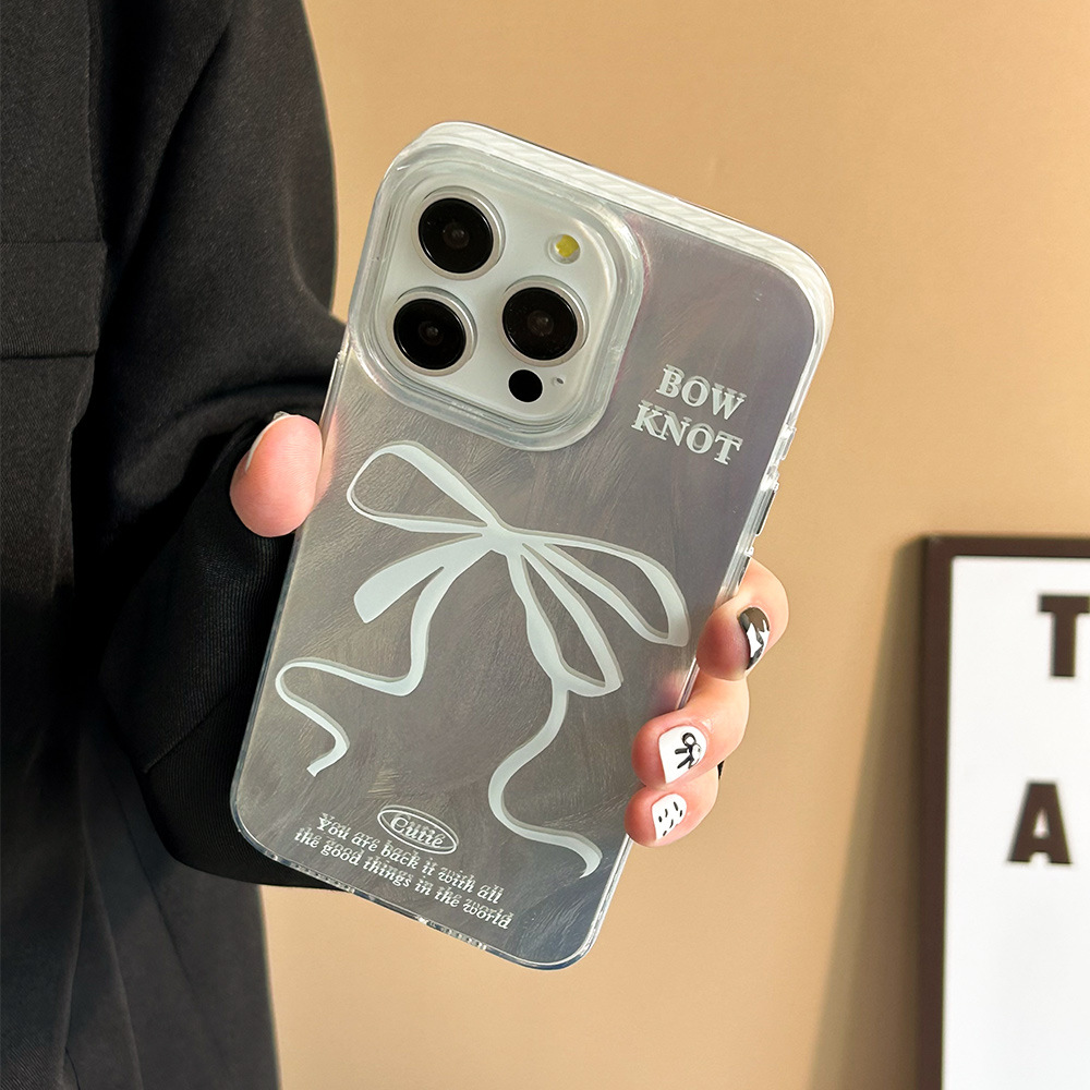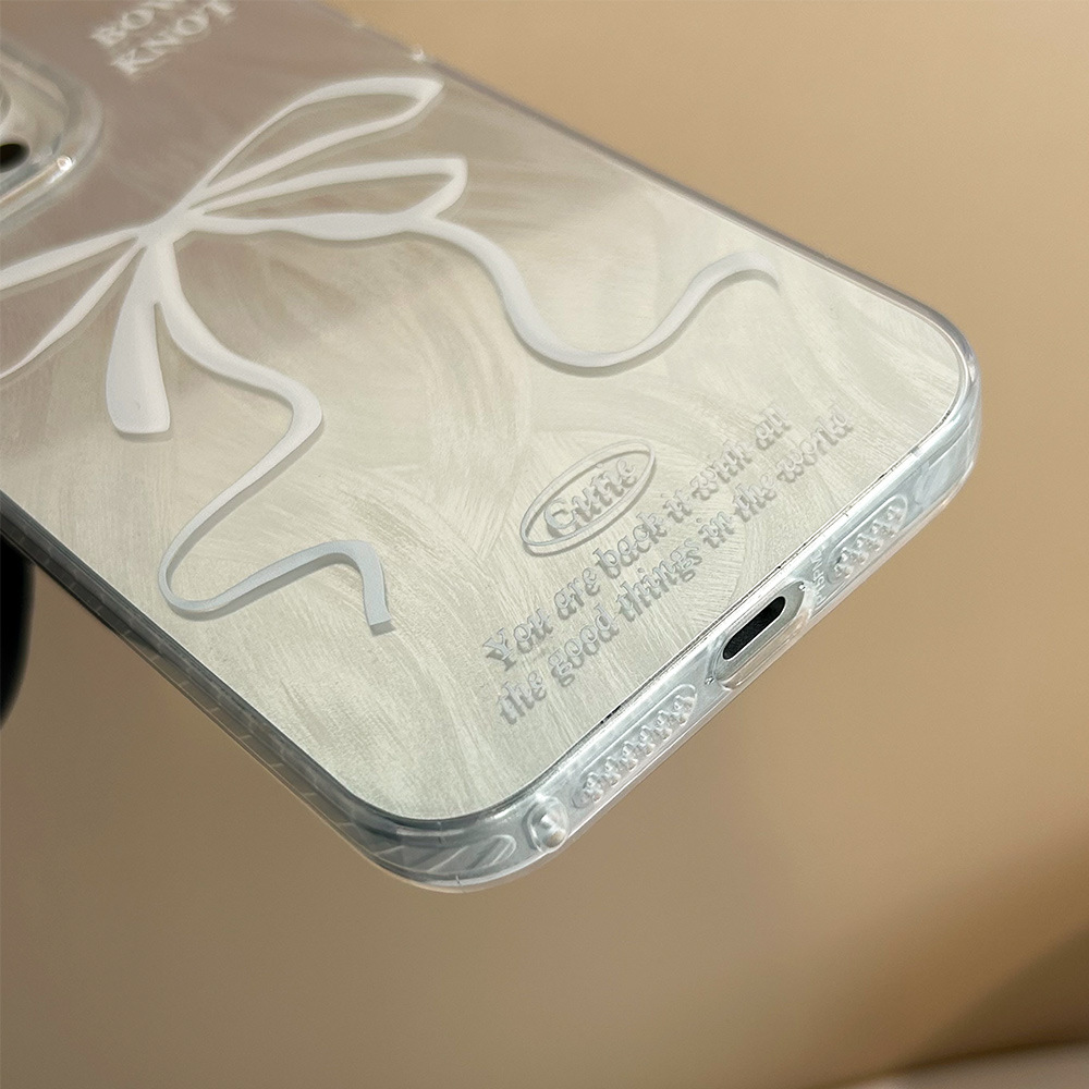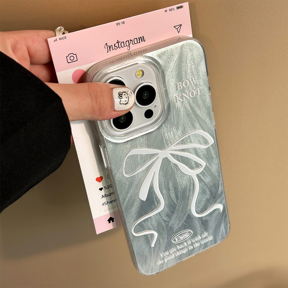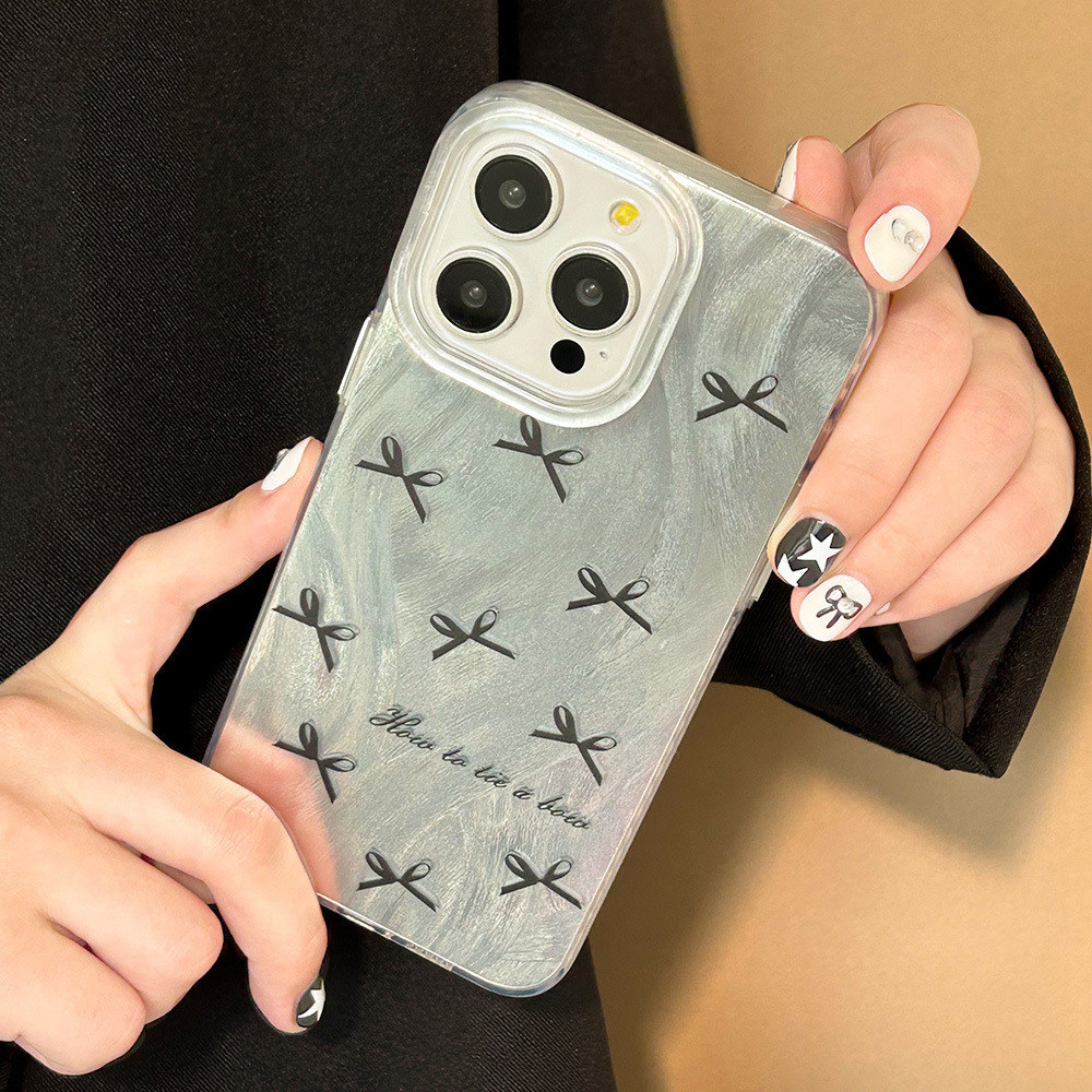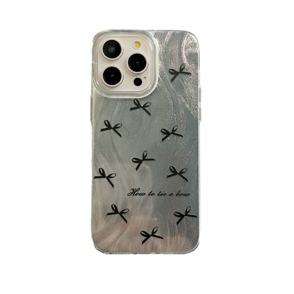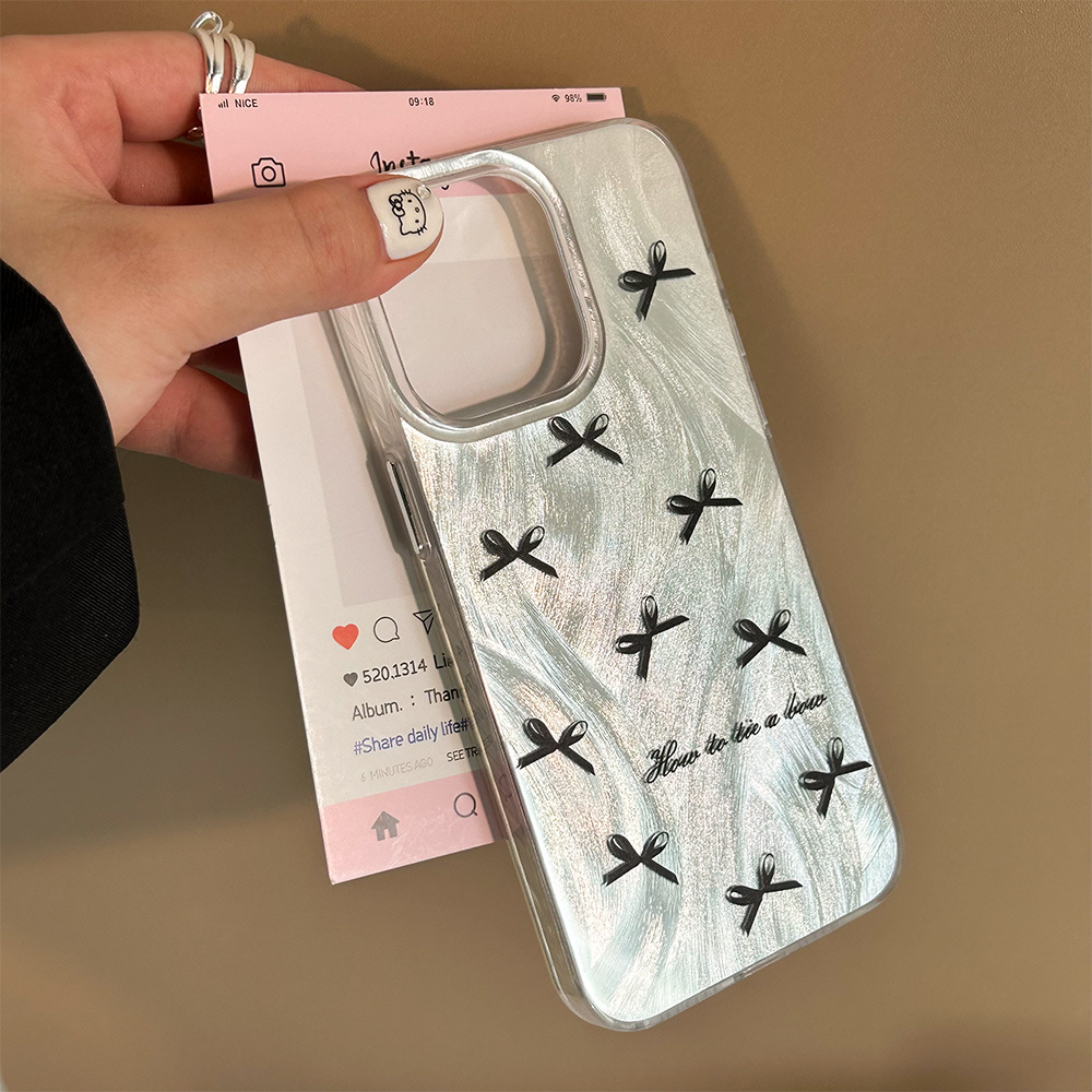 高级感黑白丝带iPhone15苹果手机壳14plus羽纱银色13pro小清新11
