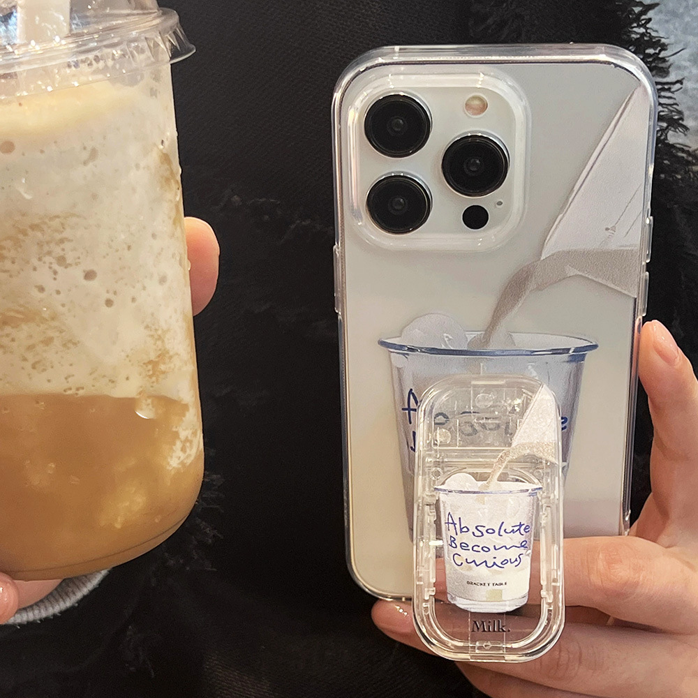 INS简约牛奶杯支架苹果15ProMax手机壳新款iPhone14全包防摔13