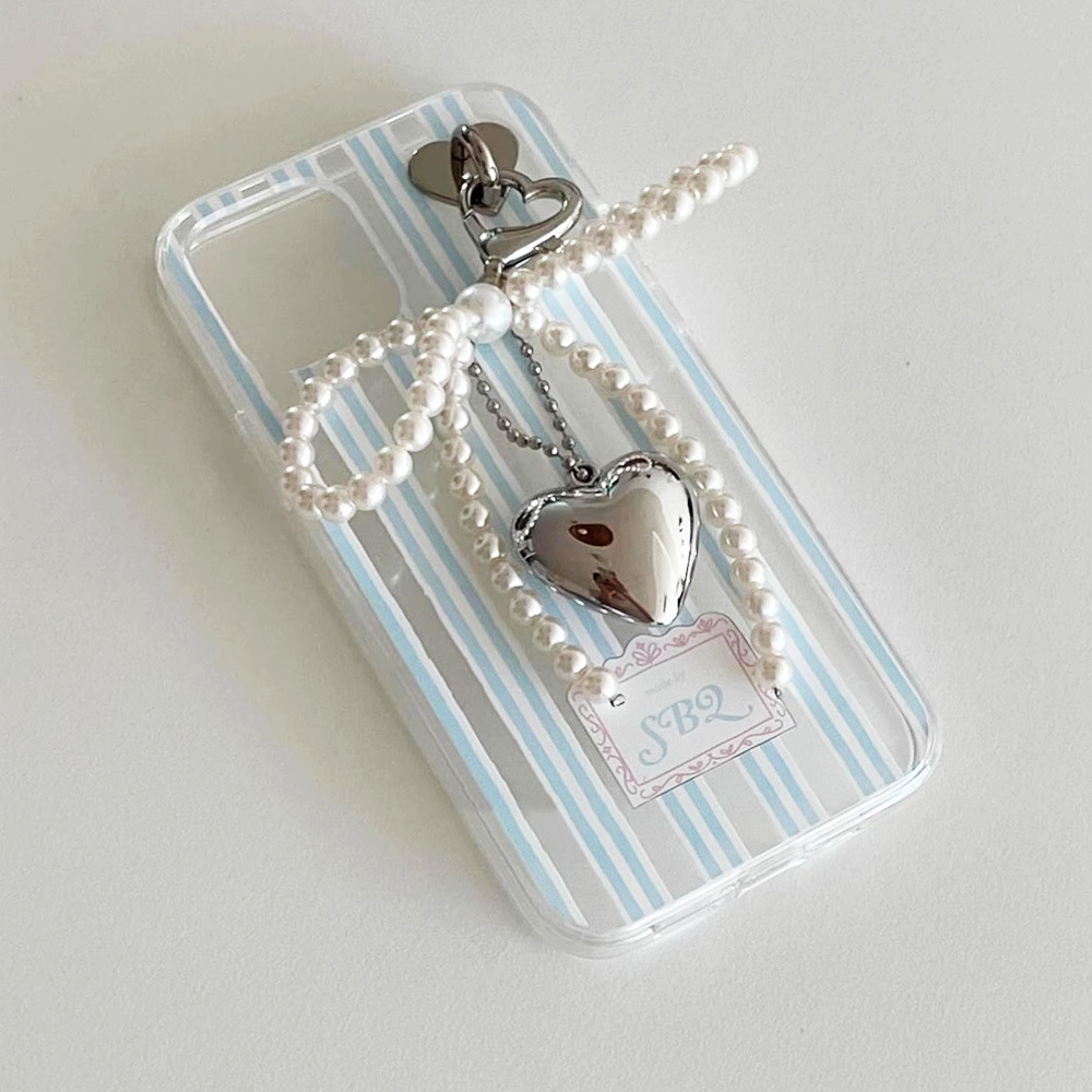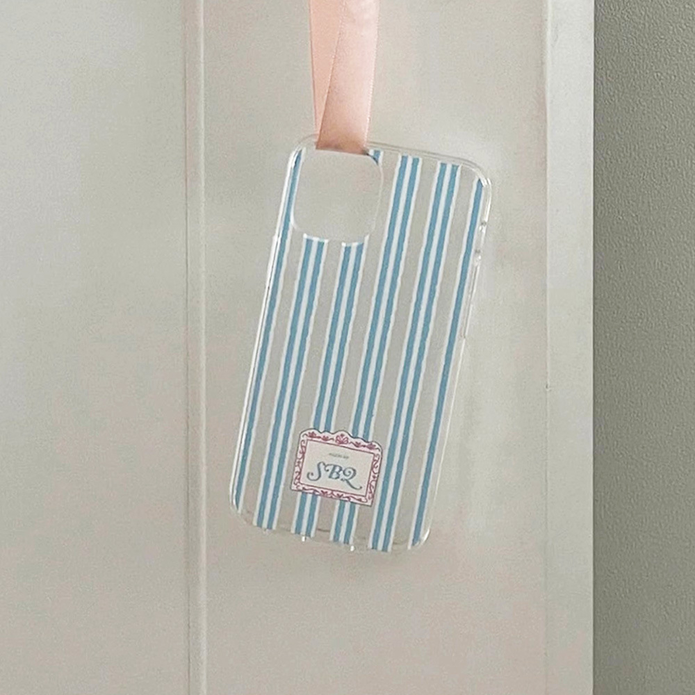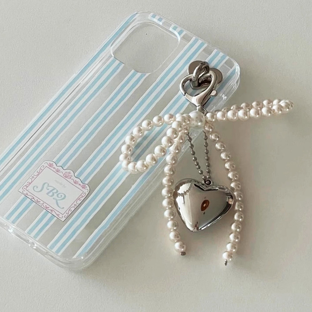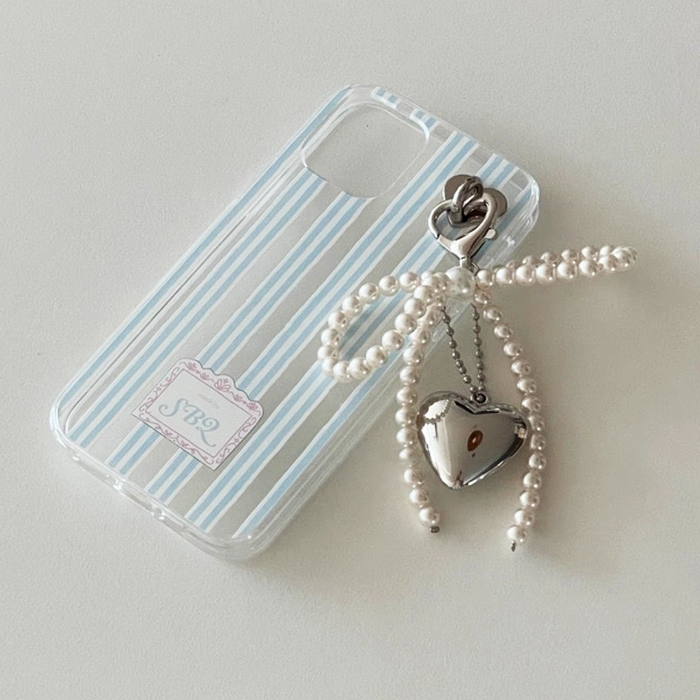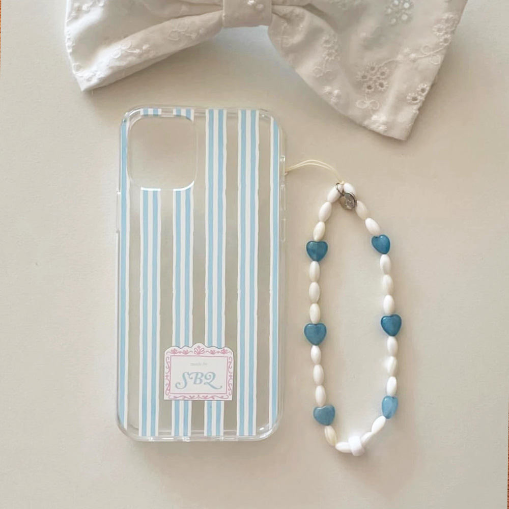 日韩蓝色条纹蝴蝶结挂件苹果15ProMax手机壳新款iPhone14全包防摔