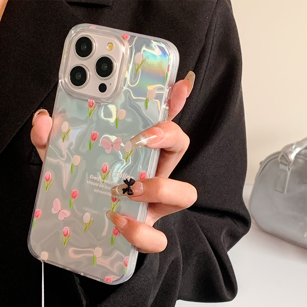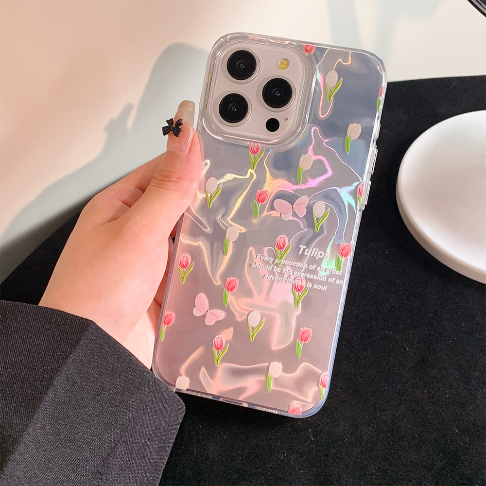 郁金香渐变粉15promax手机壳14plus苹果保护套13水波纹12夏季新品