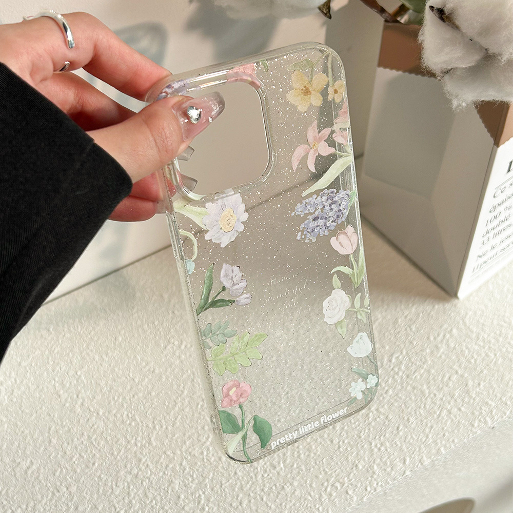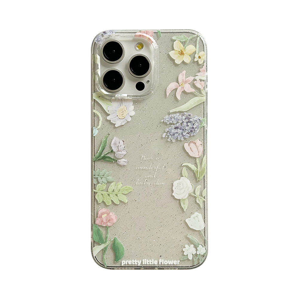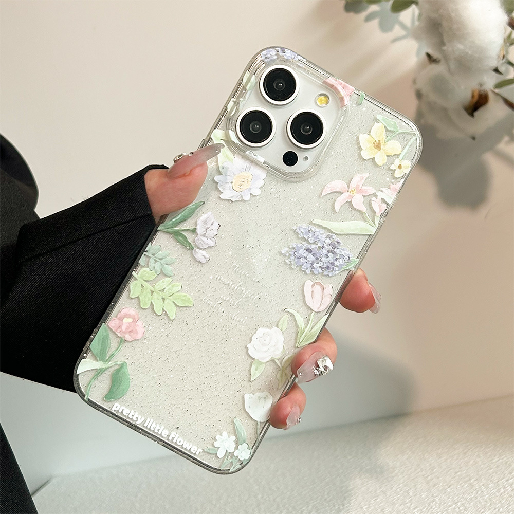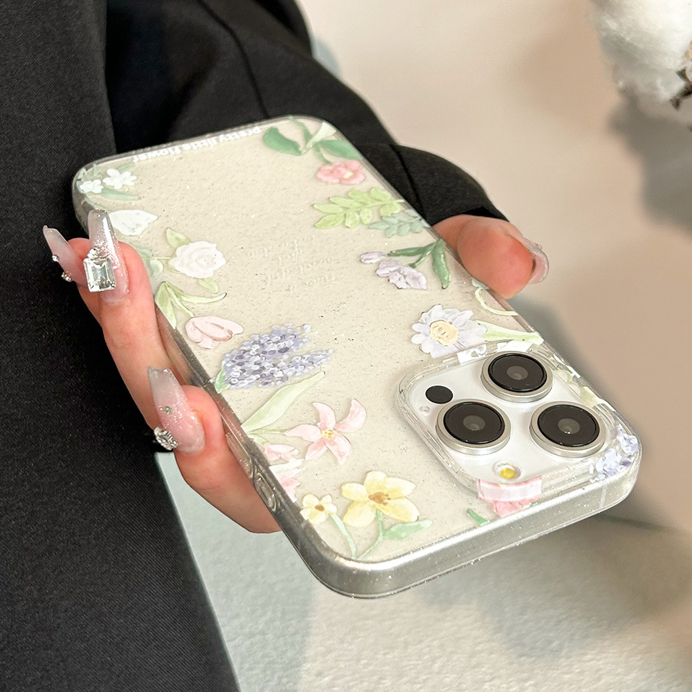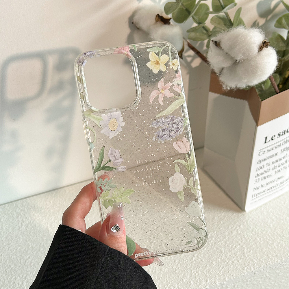 透明细闪iphone15手机壳14proamx小清新花朵13苹果12软壳11防摔XR
