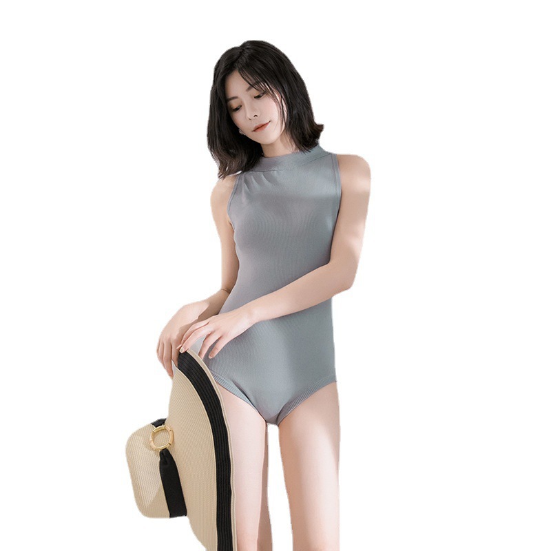 少女日系可爱 连体泳衣女 针织遮肚显瘦保守死库水温泉游泳衣