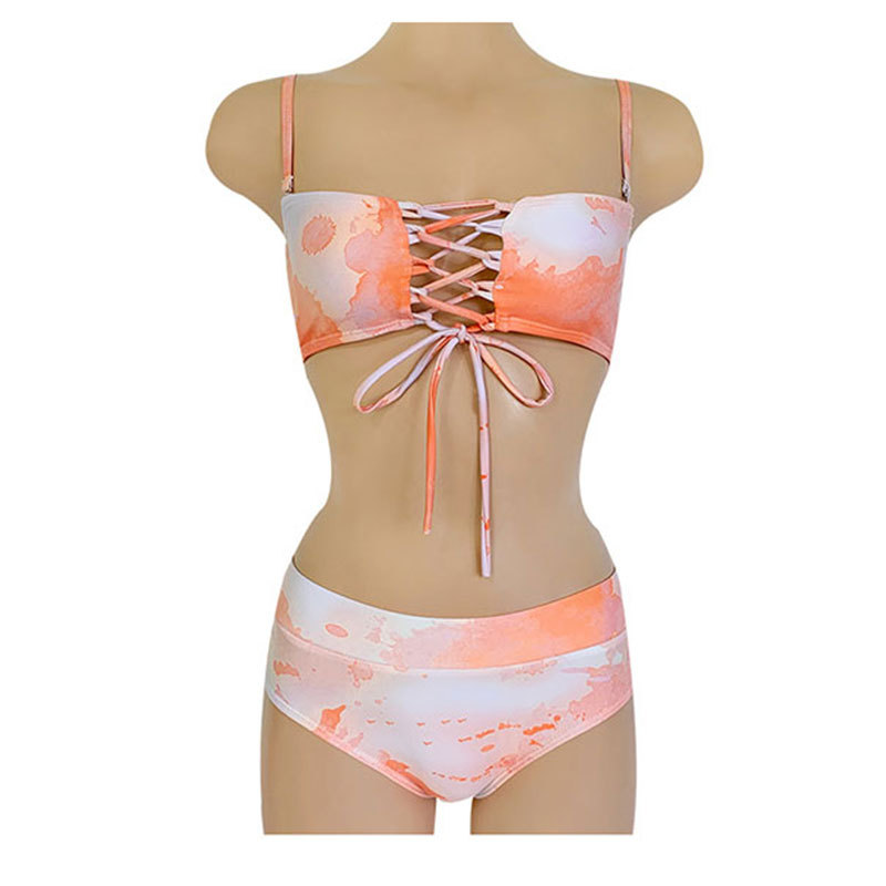 新款扎染抹胸镂空聚拢性感露背高腰欧美吊带无袖温泉分体比基尼女