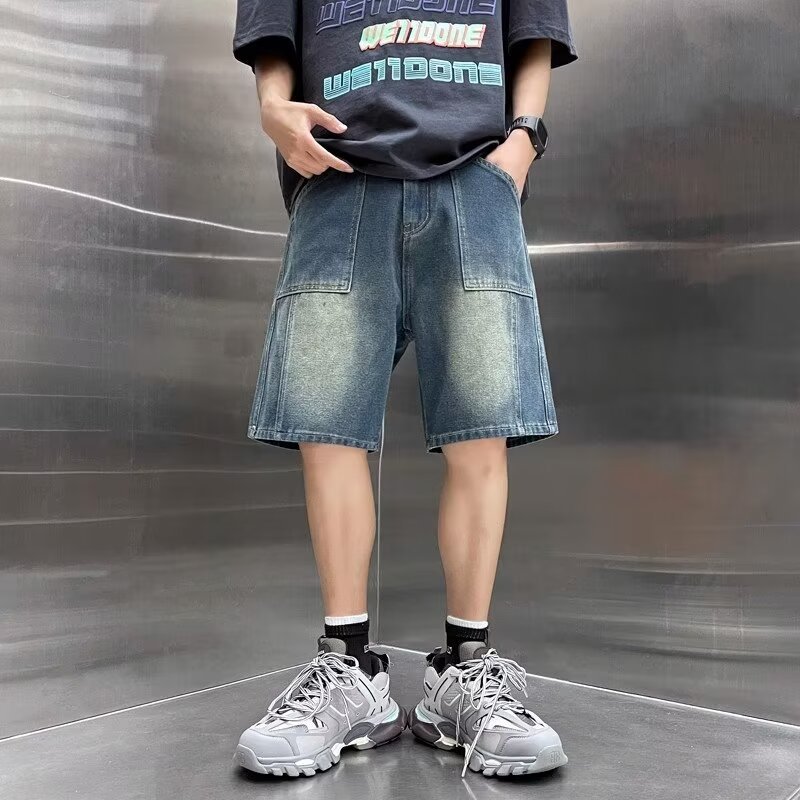 日系复古水洗牛仔短裤男夏季薄款潮牌宽松直筒百搭休闲工装五分裤