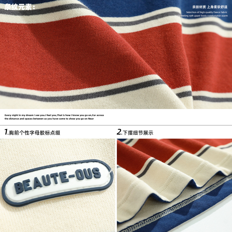 韩路男装 撞色条纹短袖T恤男夏季新款日系复古潮牌宽松体恤