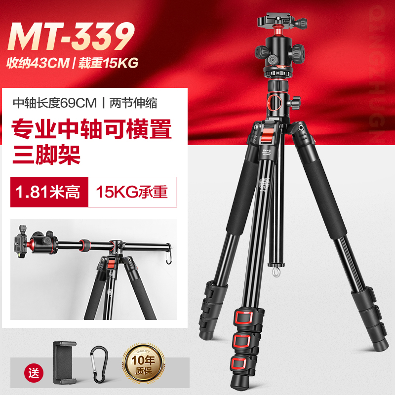 轻装时代MT-339相机三脚架单反手机便携摄影摄像俯拍中轴横置三角架自拍照视频直播支架独脚架手柄云台