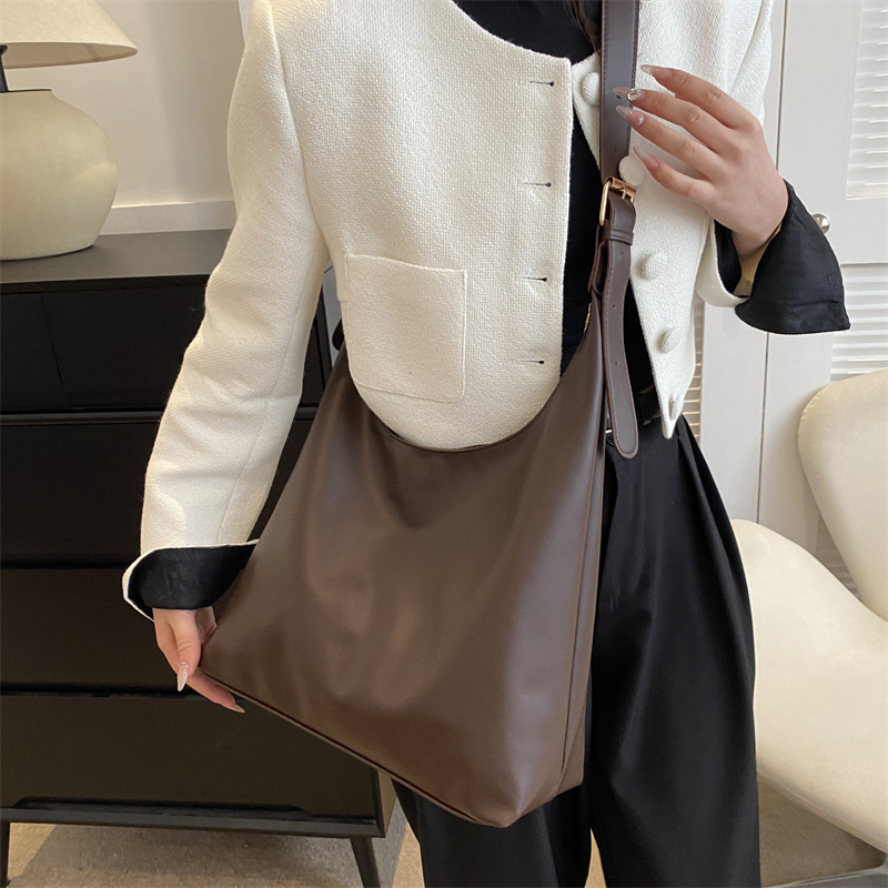 上班通勤纯色大容量包包女2025新款复古时尚腋下托特包百搭单肩包