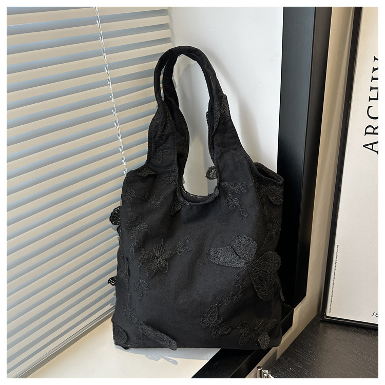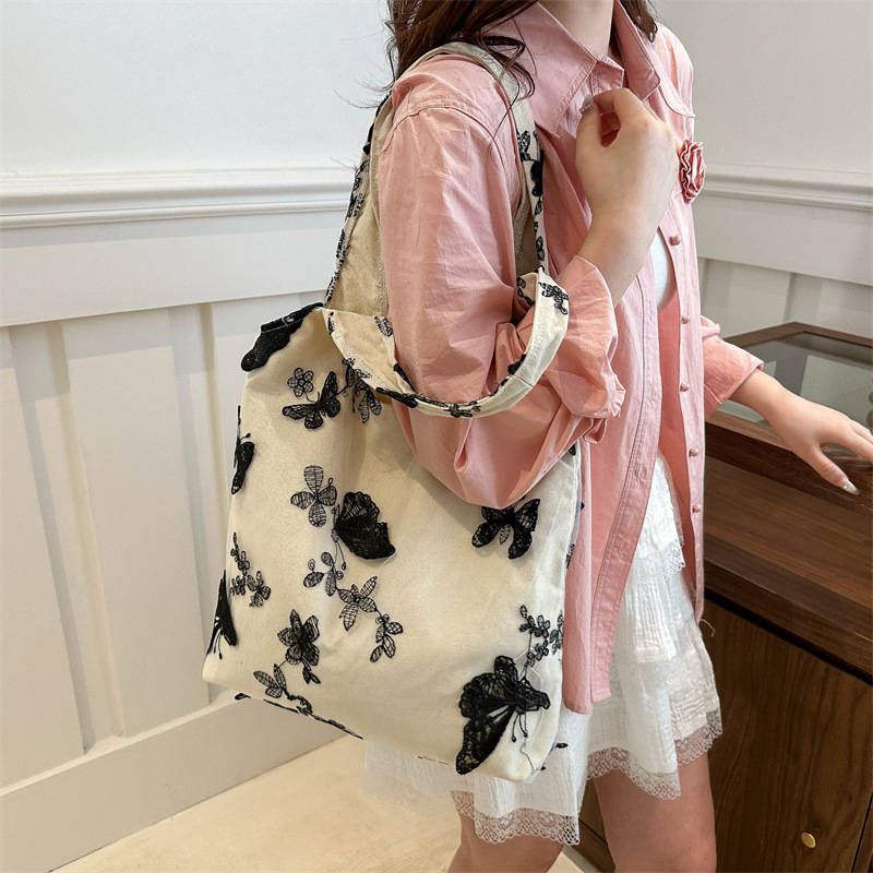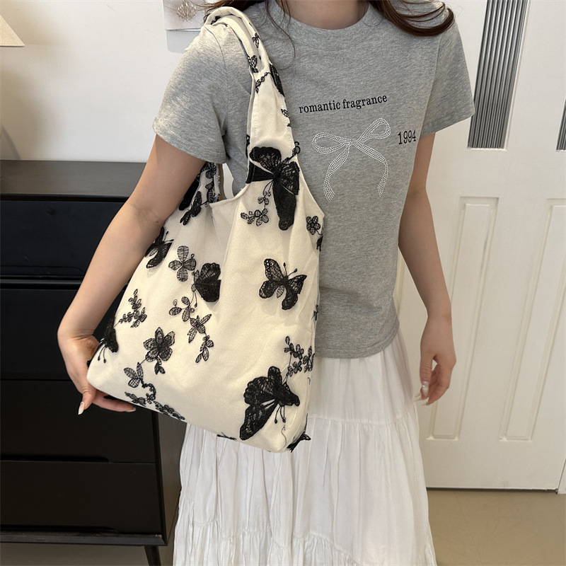 仙女夏季出行刺绣蝴蝶蕾丝大容量尼龙帆布文艺休闲腋下单肩女包