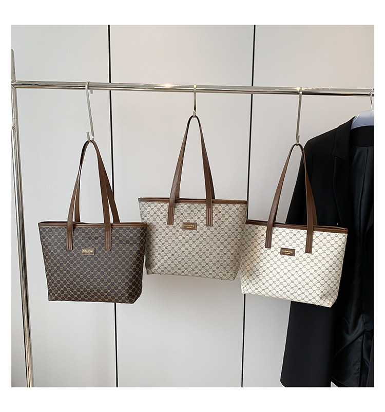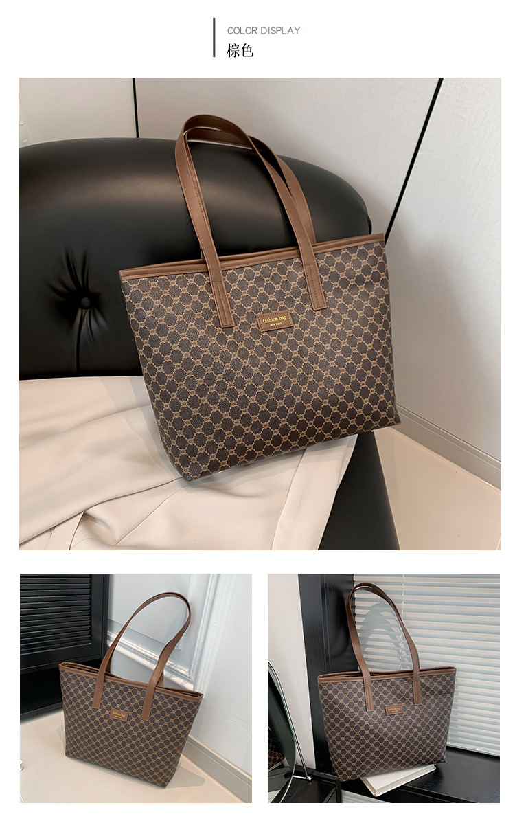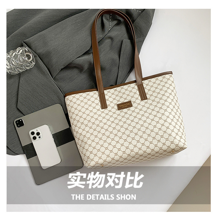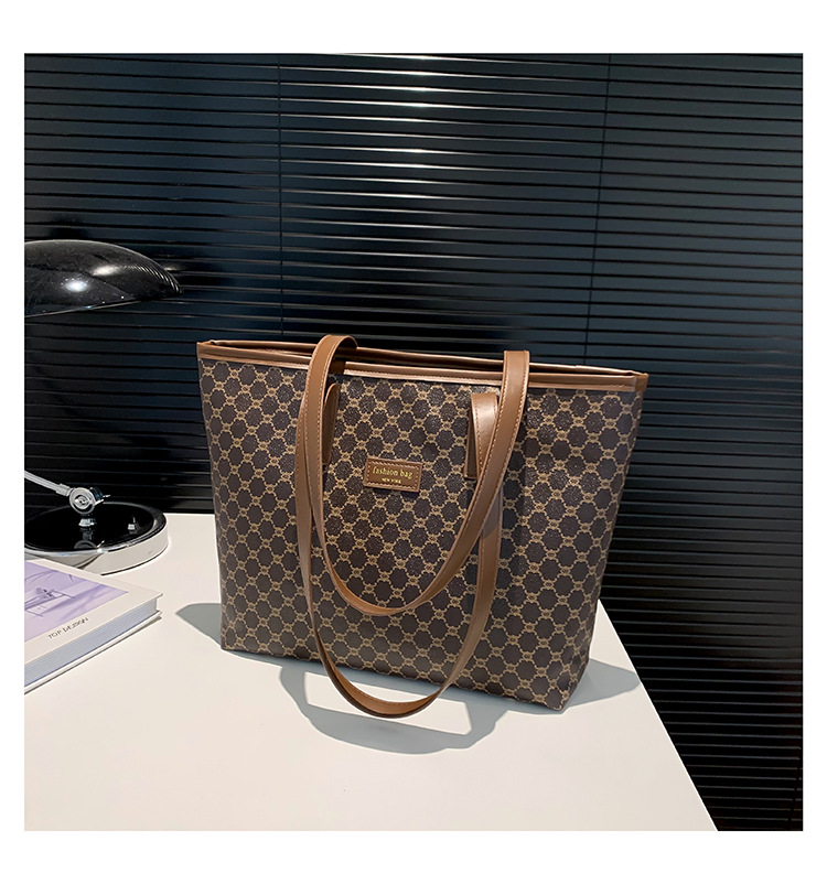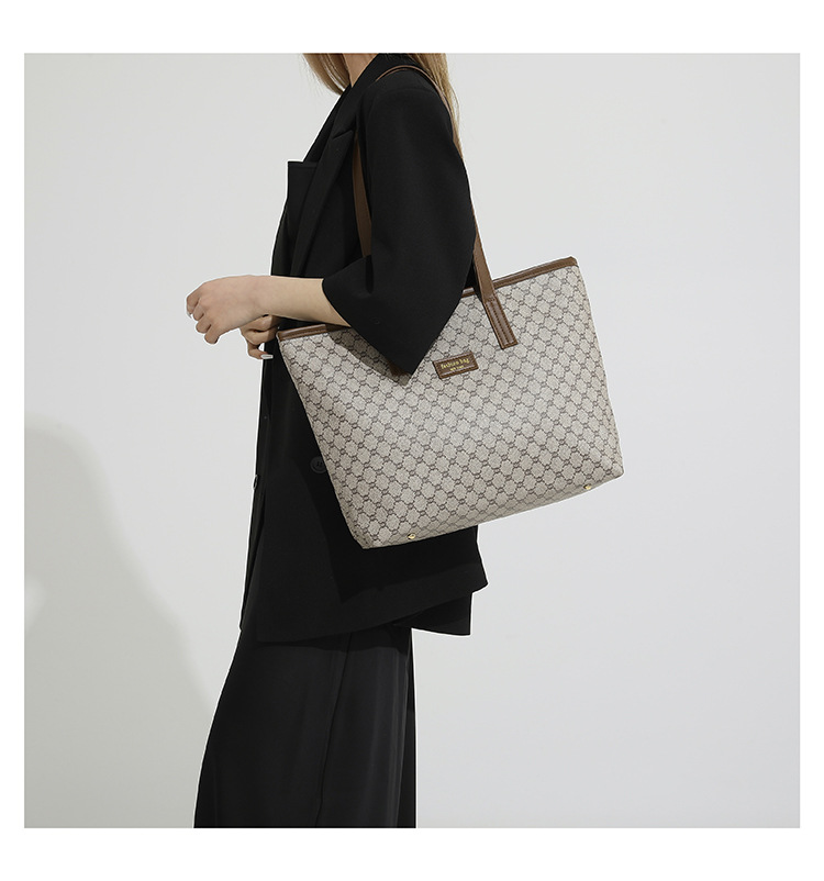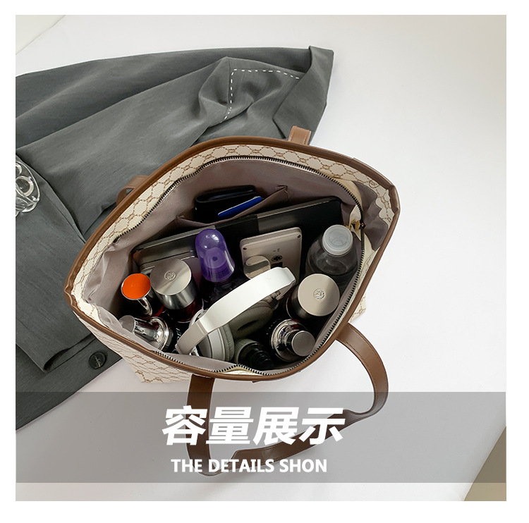 新款大容量托特包包复古印花女包流行百搭韩版休闲大单肩包包