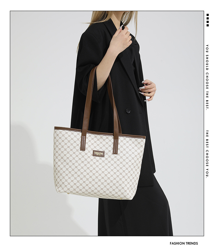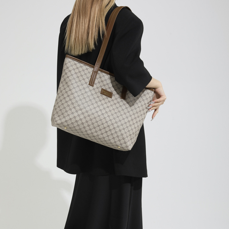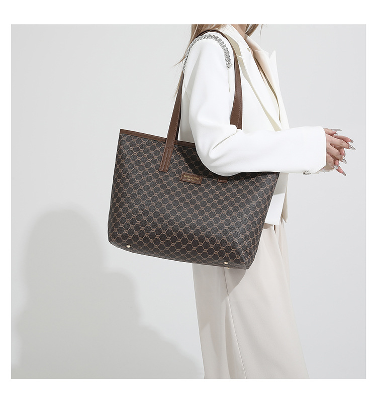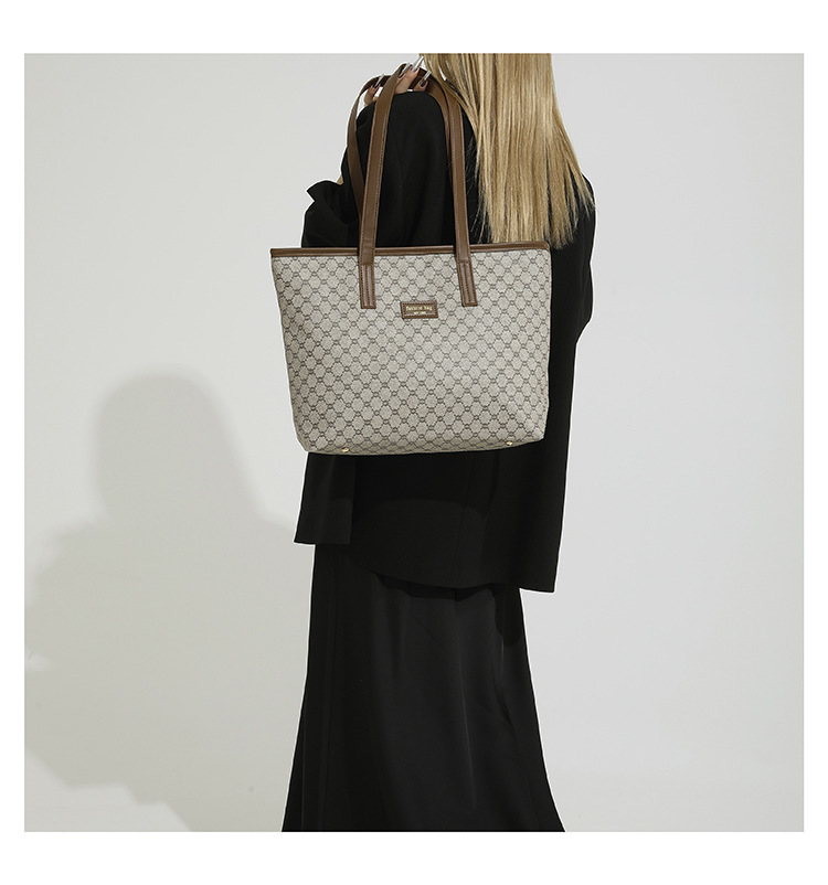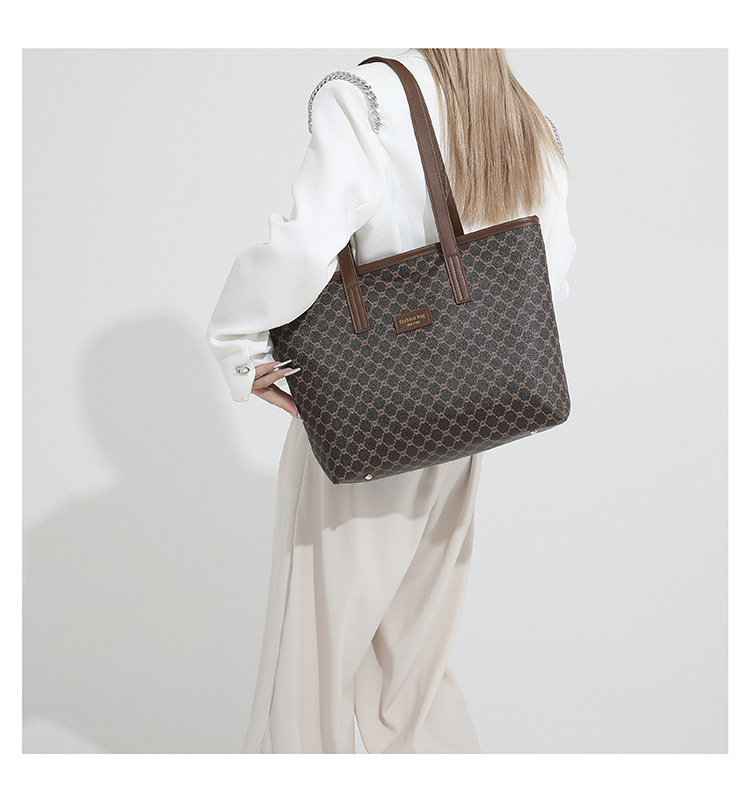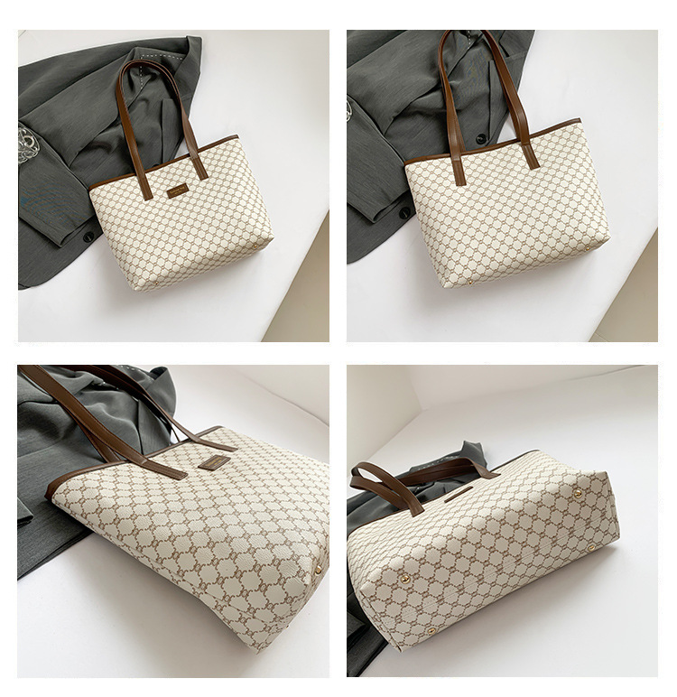 新款大容量托特包包复古印花女包流行百搭韩版休闲大单肩包包