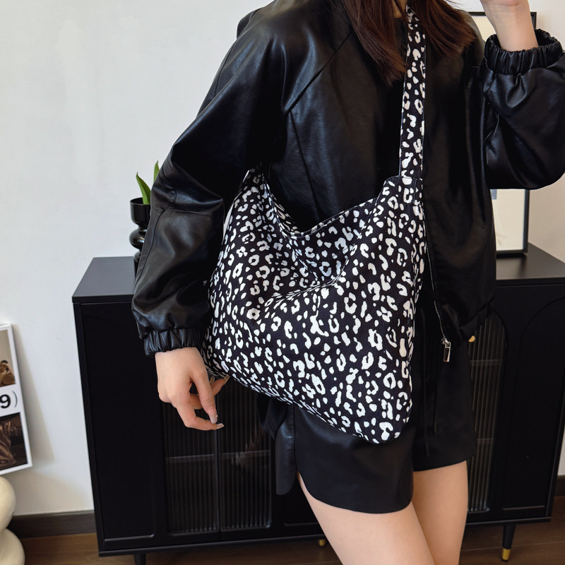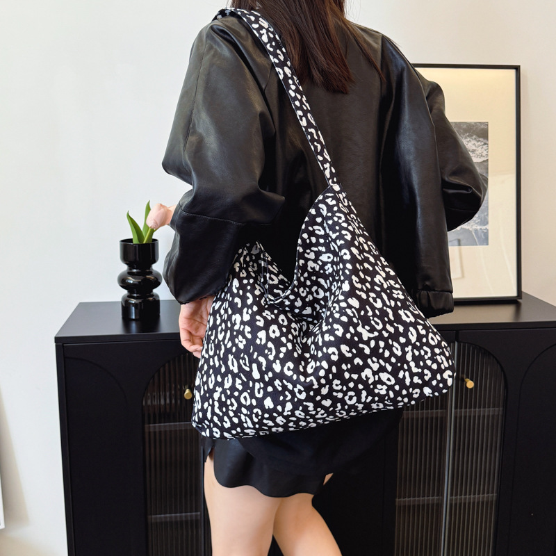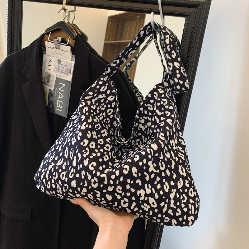 蝴蝶时尚豹纹印花帆布文艺潮流个性复古休闲单肩手提托特腋下包包