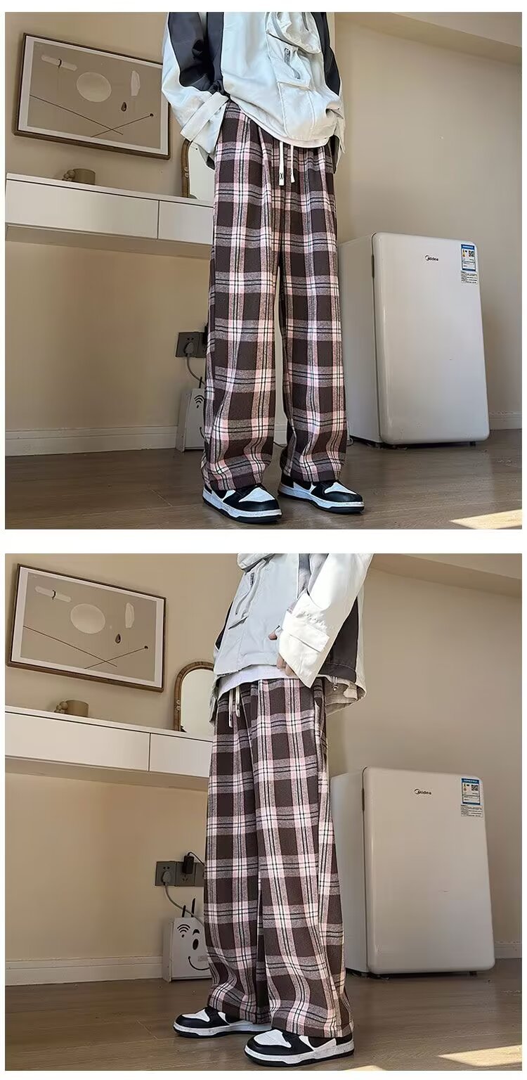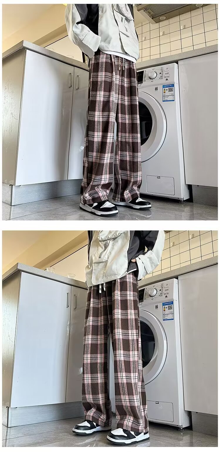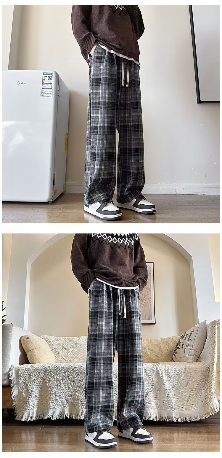 年新款格子男士休闲裤慵懒气质潮牌潮流休闲流行宽松休闲裤