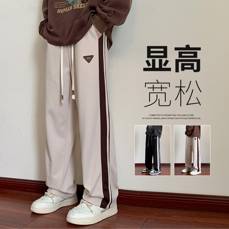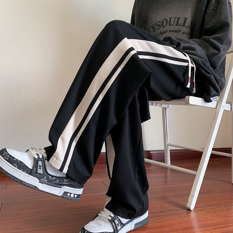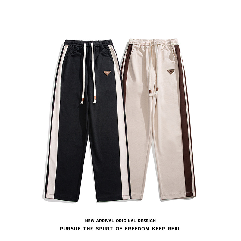 春夏新品针织卫裤运动休闲裤男潮牌个性宽松拼色侧边条纹长裤
