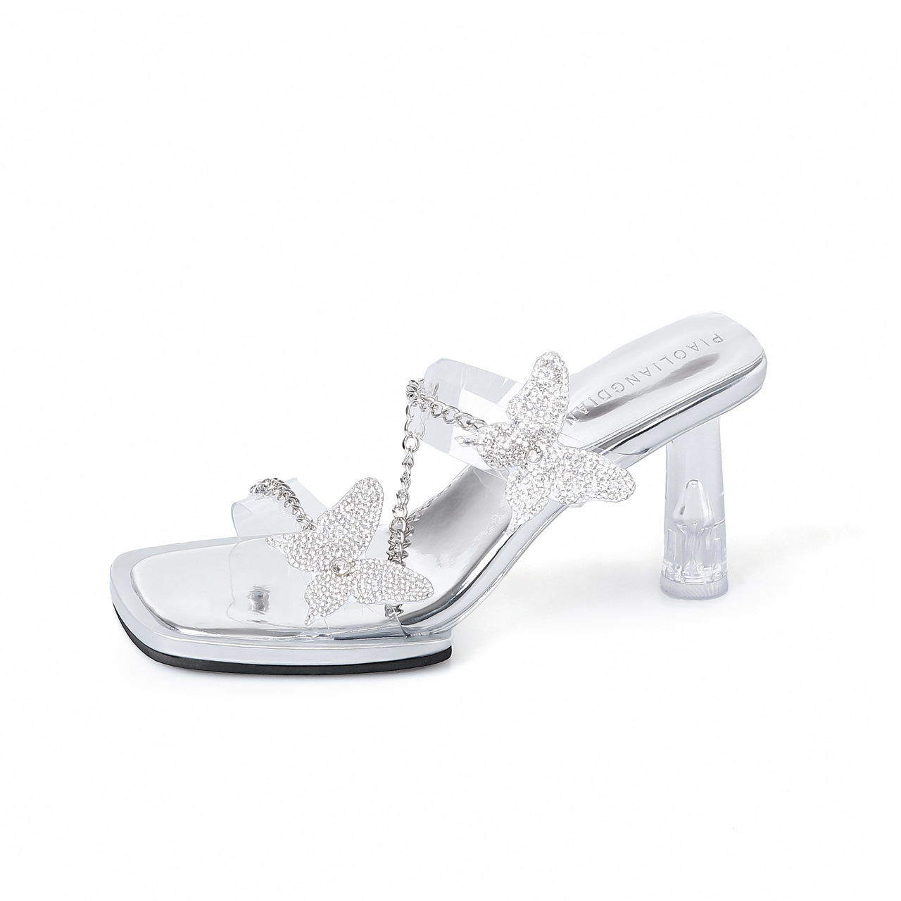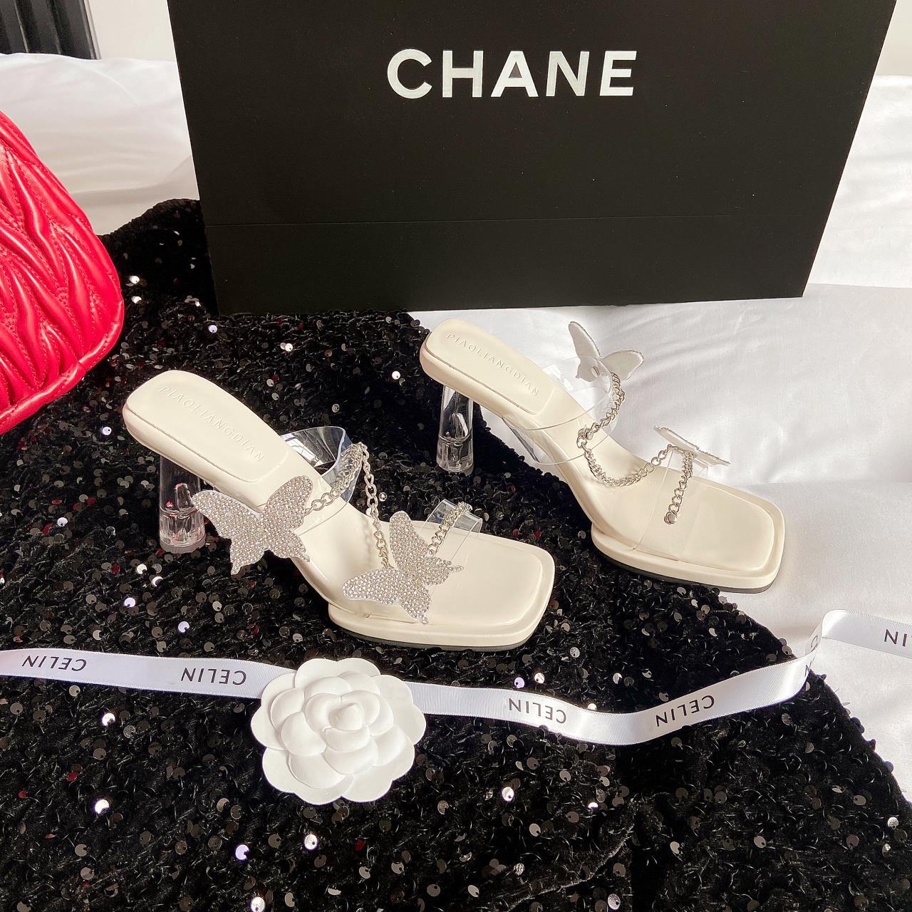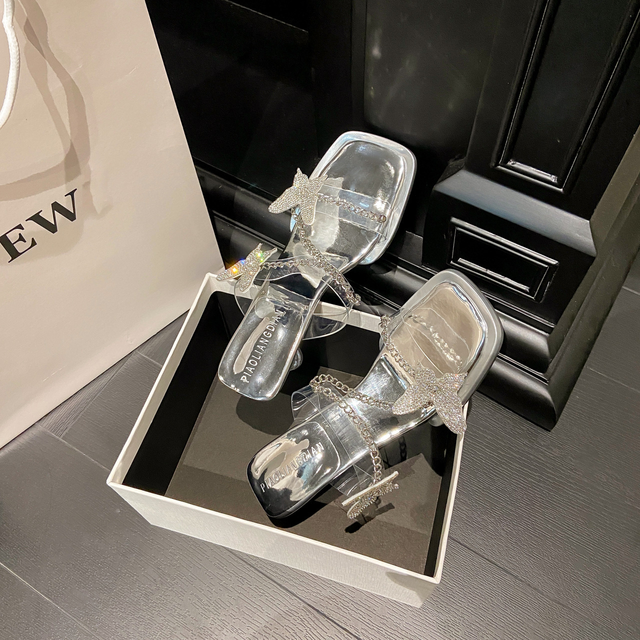 法式仙女风配裙子银色高跟凉拖鞋女夏外穿新款网红高级感拖鞋