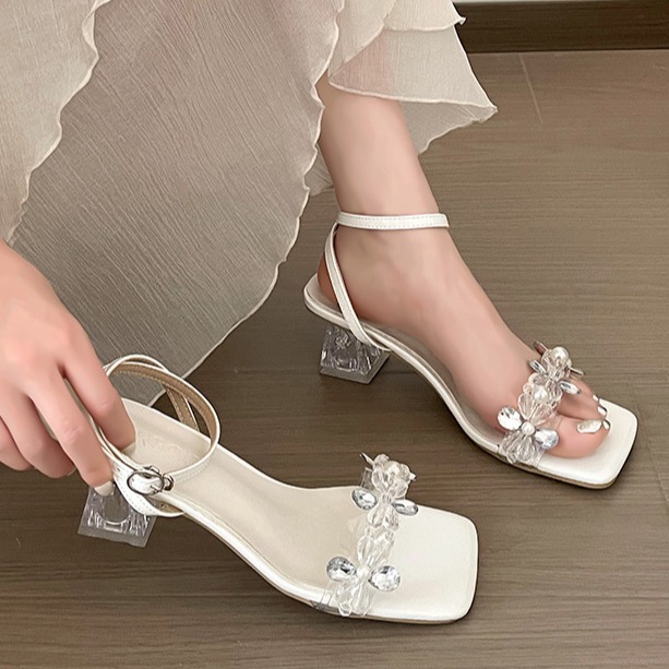 时尚气质法式配裙子粗跟凉鞋女款新款夏季外穿小香风仙女鞋子