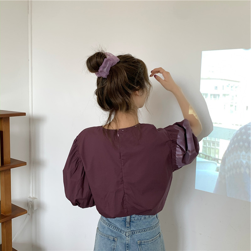 设计感小众雪纺白色短袖衬衫女夏薄款新款法式百搭泡泡袖上衣