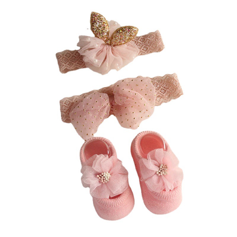 - 4652藕粉花发带+小袜