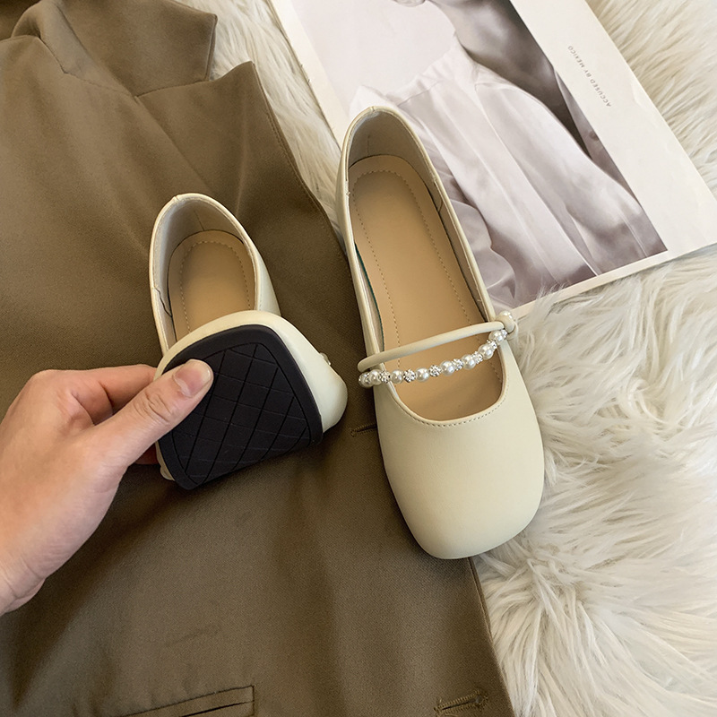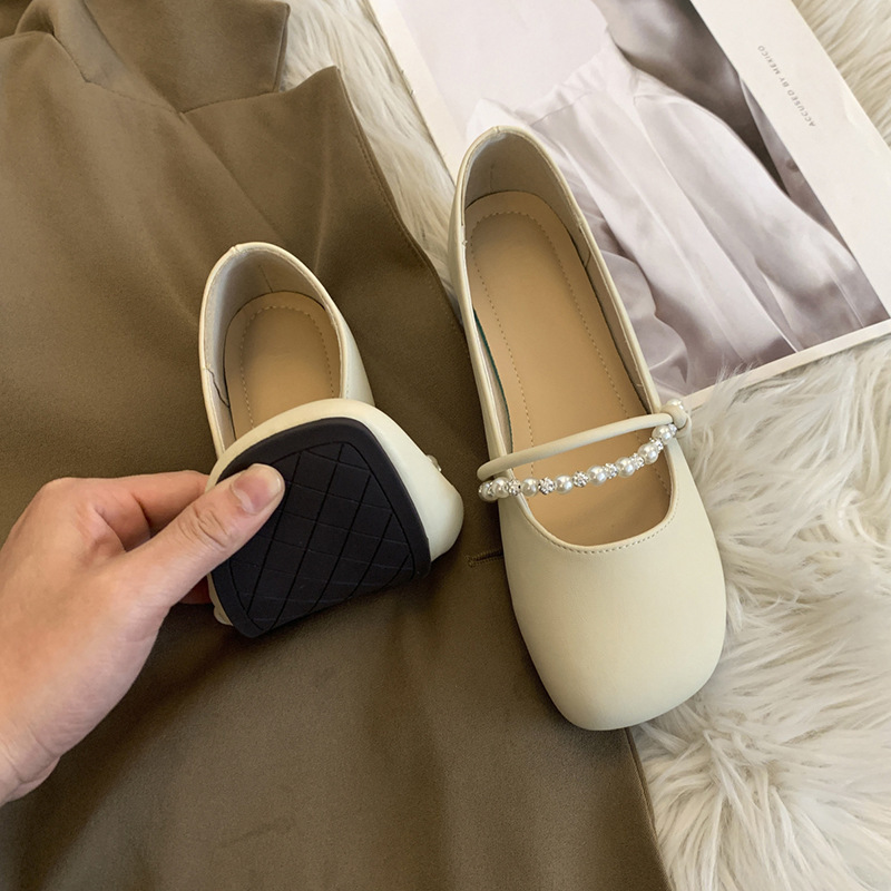 法式复古一脚蹬浅口玛丽珍单鞋女新款夏季平底配裙子小皮鞋子