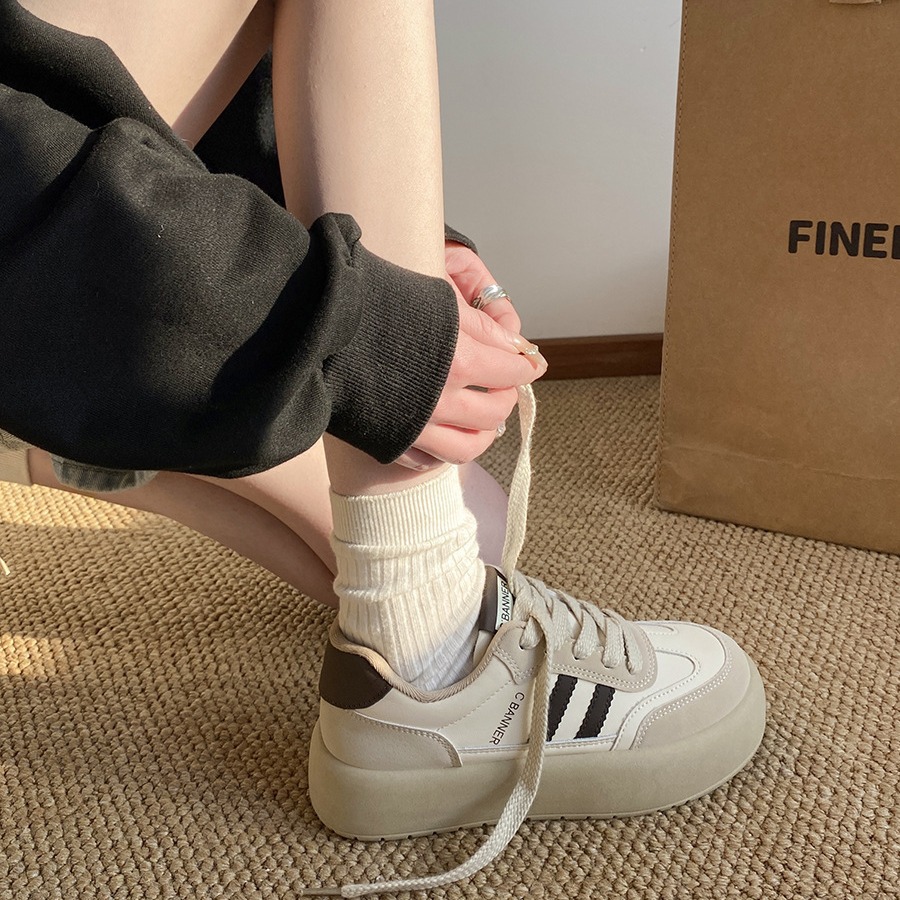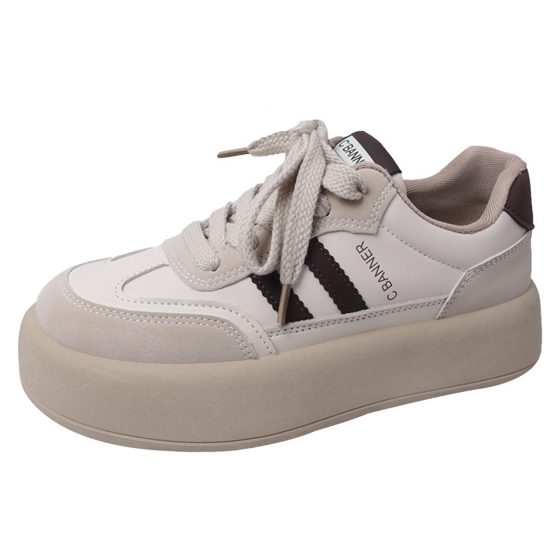 松糕跟爆款轻便增高厚底小白鞋女新款春款学生复古低帮板鞋