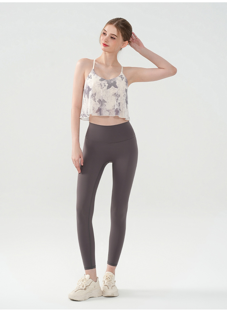 网纱国风碎花云感瑜伽服背心 渐变印花健身交叉吊带运动内衣外穿
