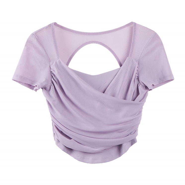 高档含固定式胸垫运动上衣女网纱拼接瑜伽服T恤健身服短袖夏季