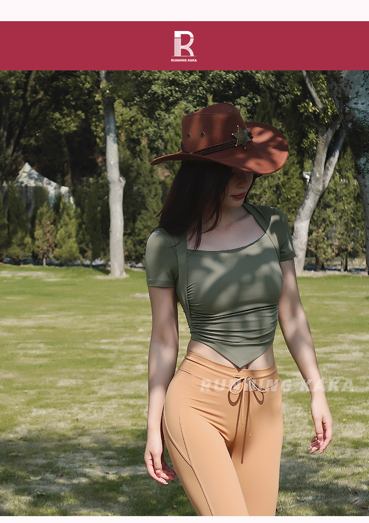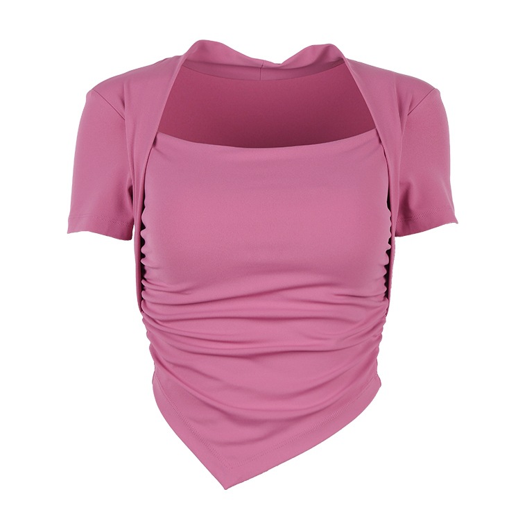 一体杯带胸垫瑜伽上衣夏季紧身显瘦健身服运动t恤普拉提训练短袖