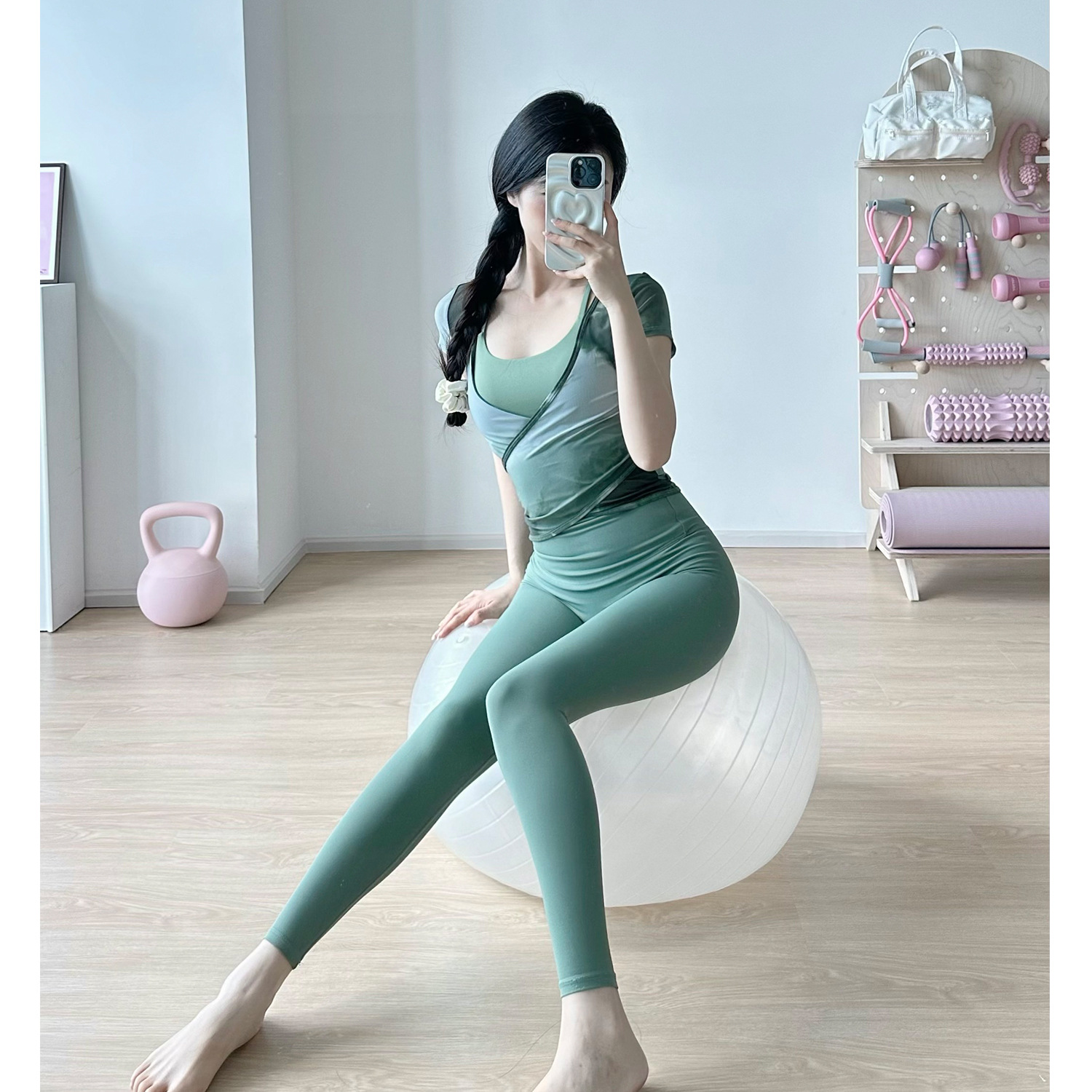 带胸垫瑜伽服背心荷叶肩美背小众好看的仙气运动无袖上衣女舞蹈服