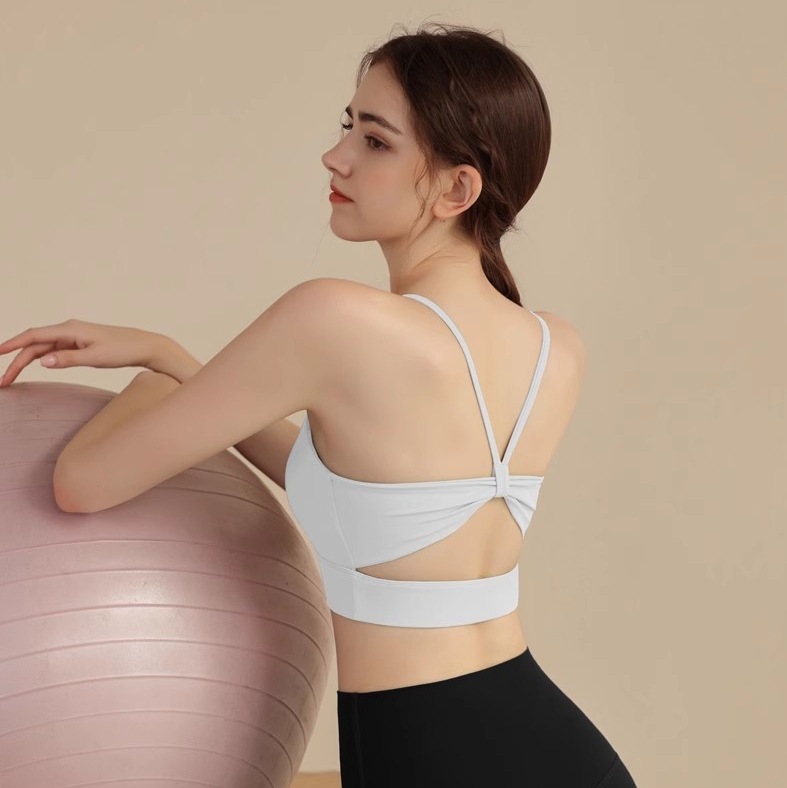 跨境瑜伽服内衣性感镂空细肩带背心高强度健身训练文胸一体式胸垫