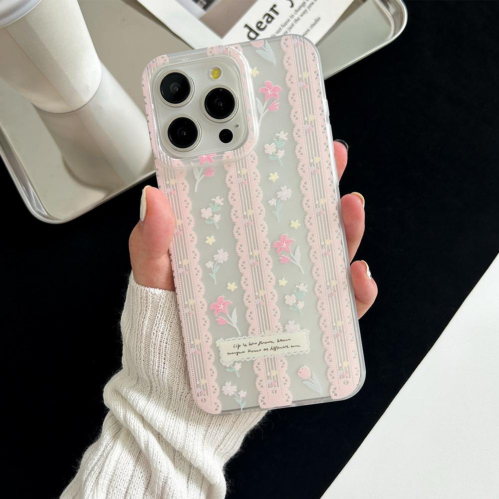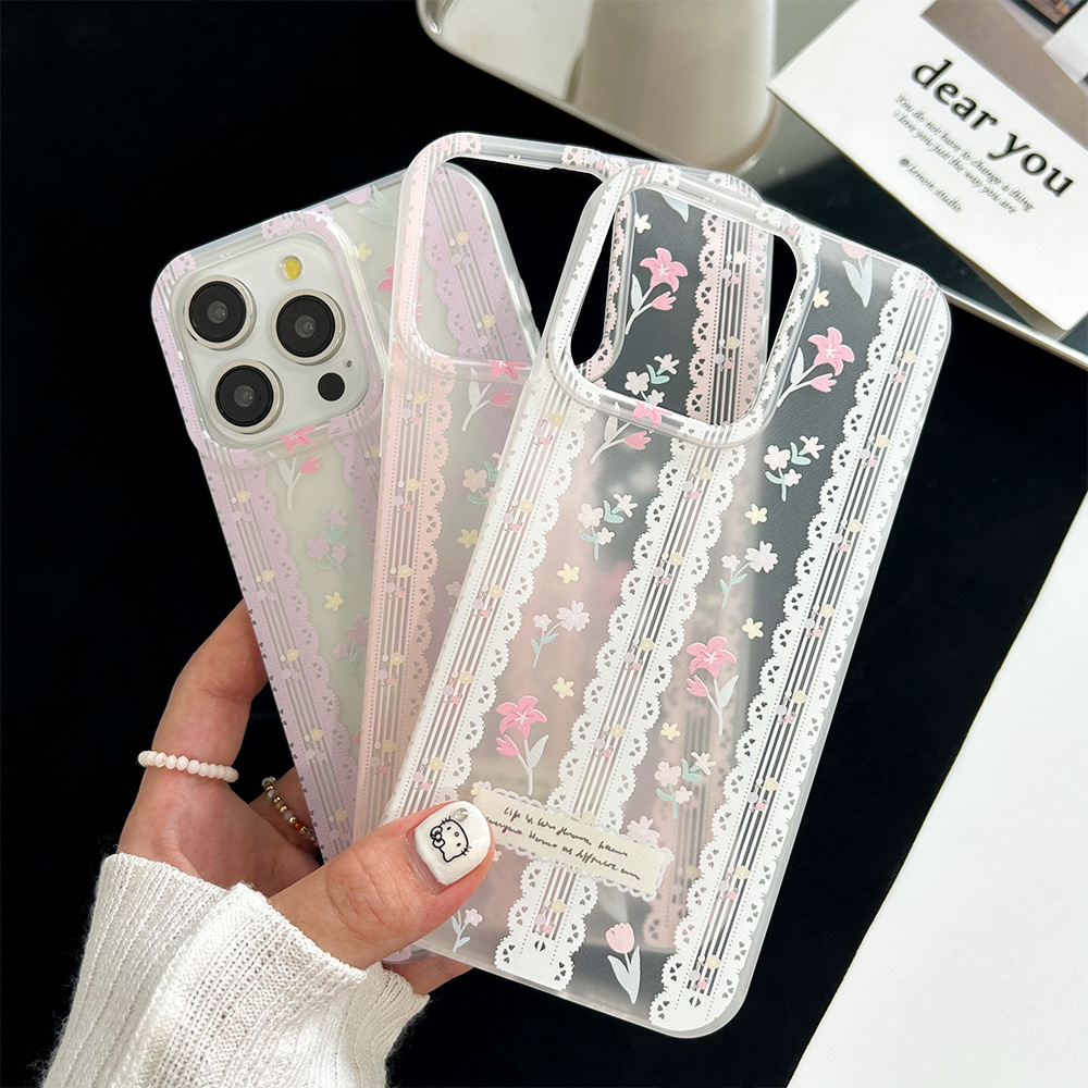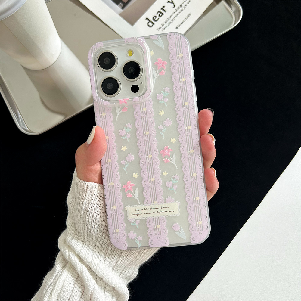 磨砂蕾丝小碎花iphone15手机壳14苹果保护套11proamx紫色13软壳12