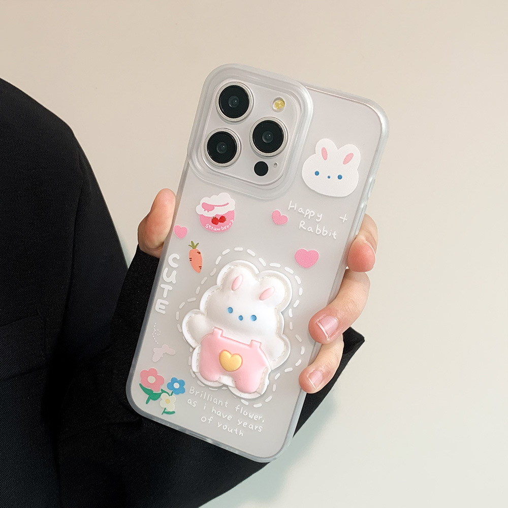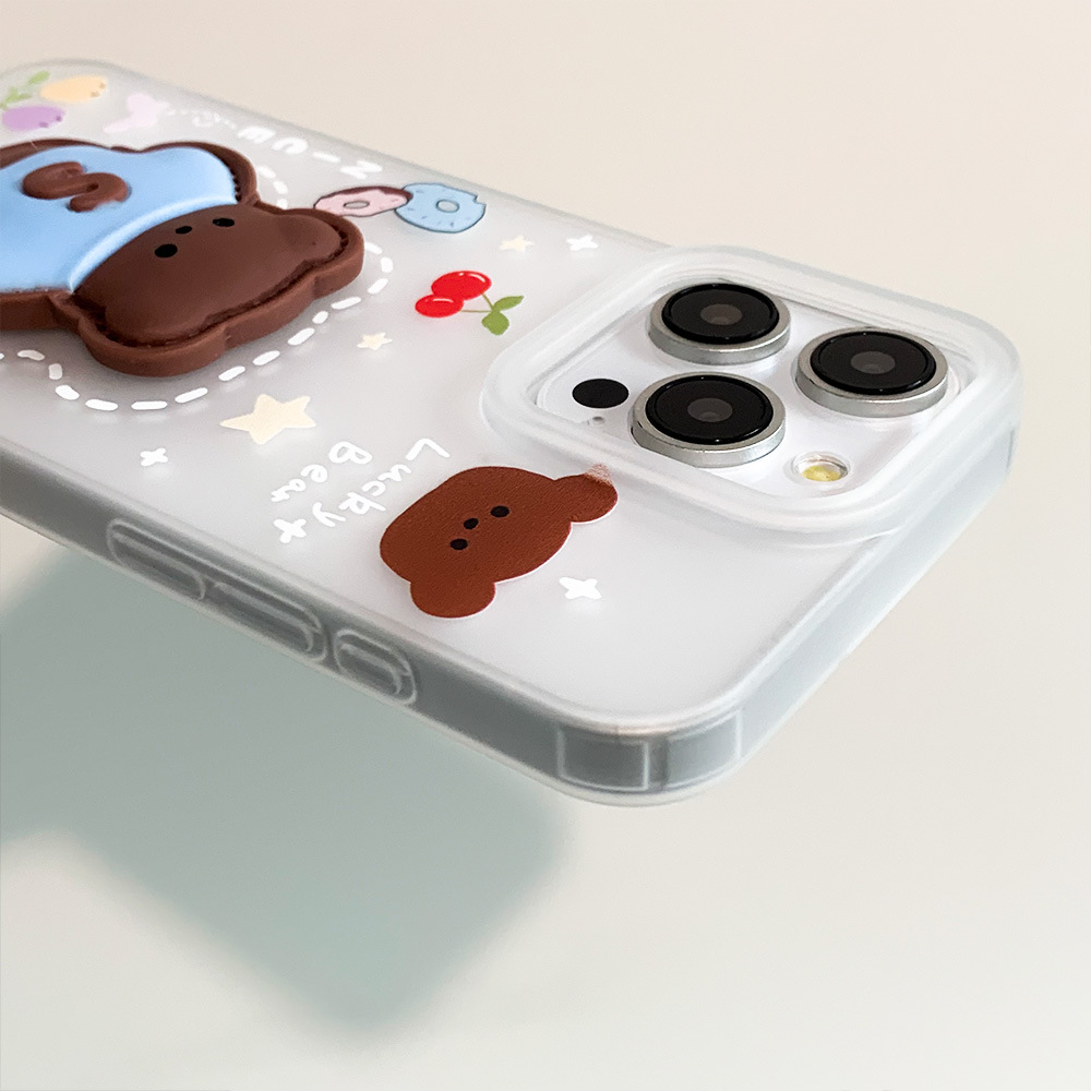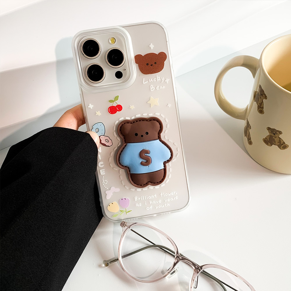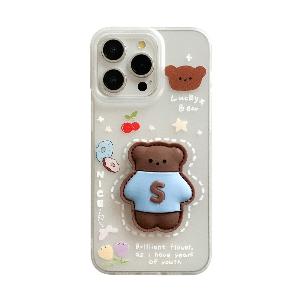 立体支架熊iPhone15苹果手机壳14plus磨砂透白11保护套12软壳XS/8