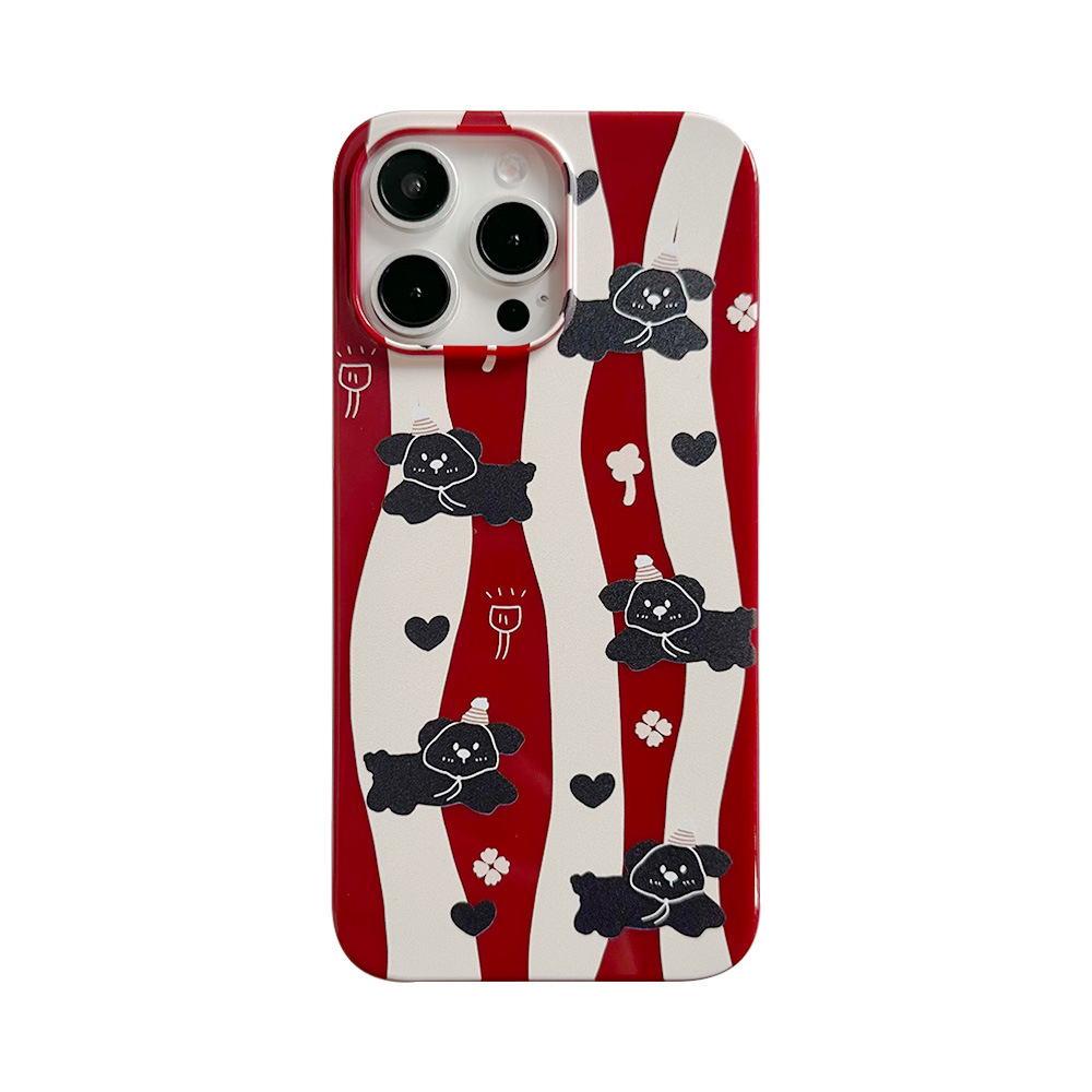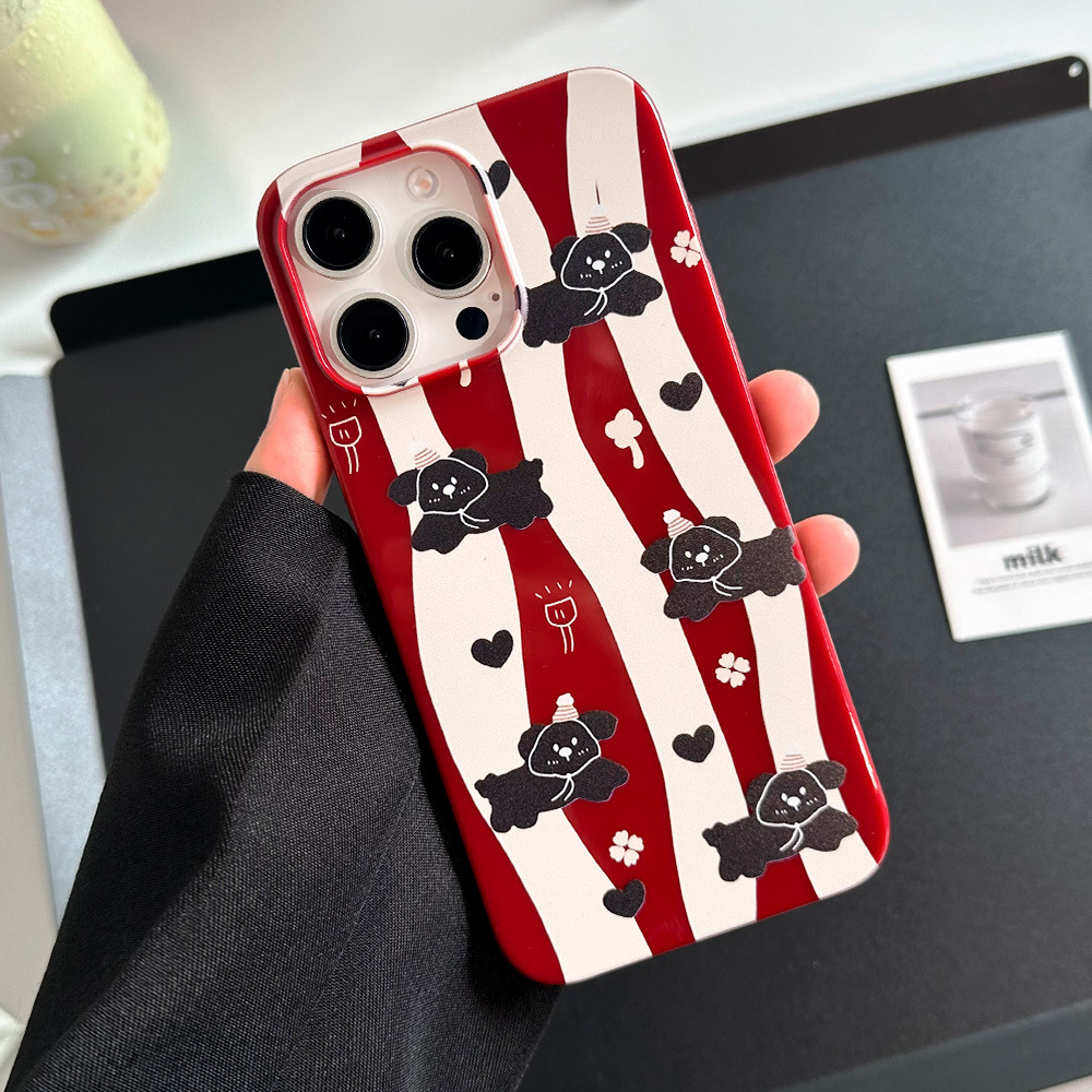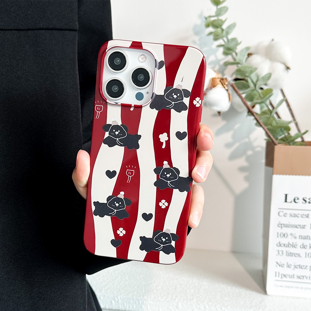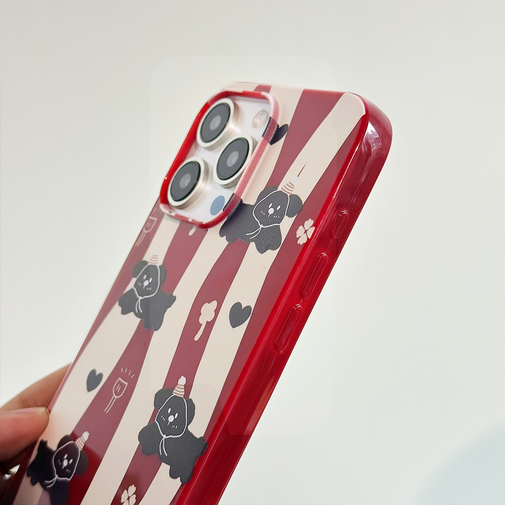 酒红色条纹小狗iPhone15promax手机壳14果冻软壳13苹果12保护套11