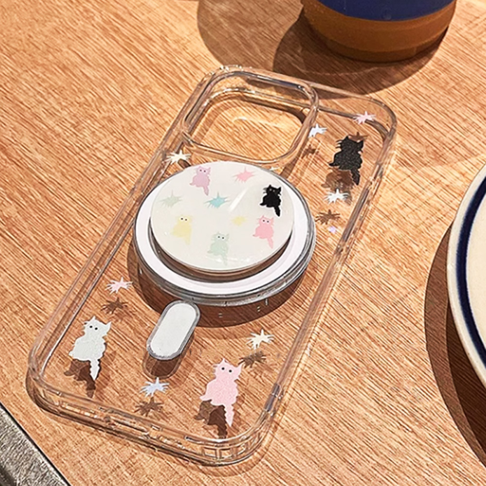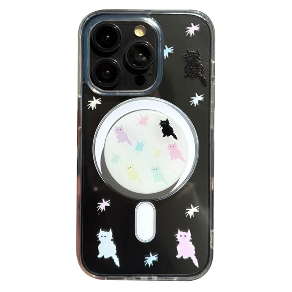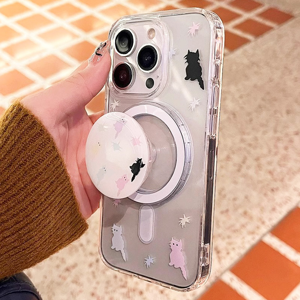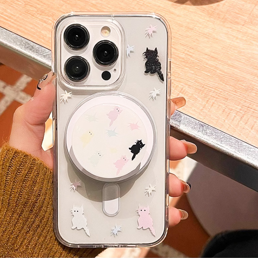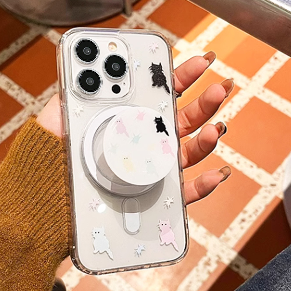 卡通彩色猫咪磁吸支架苹果15手机壳iPhone14ProMax防震防摔13可爱
