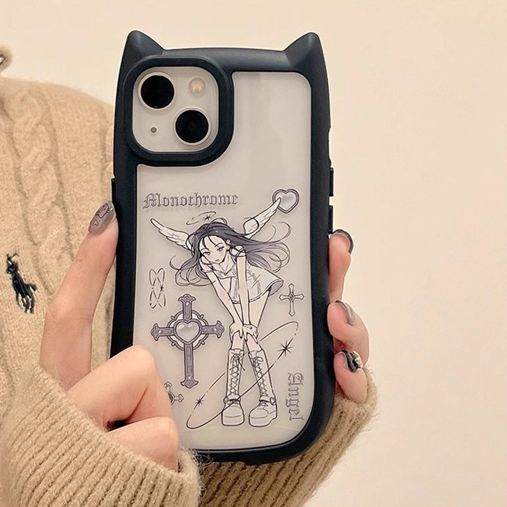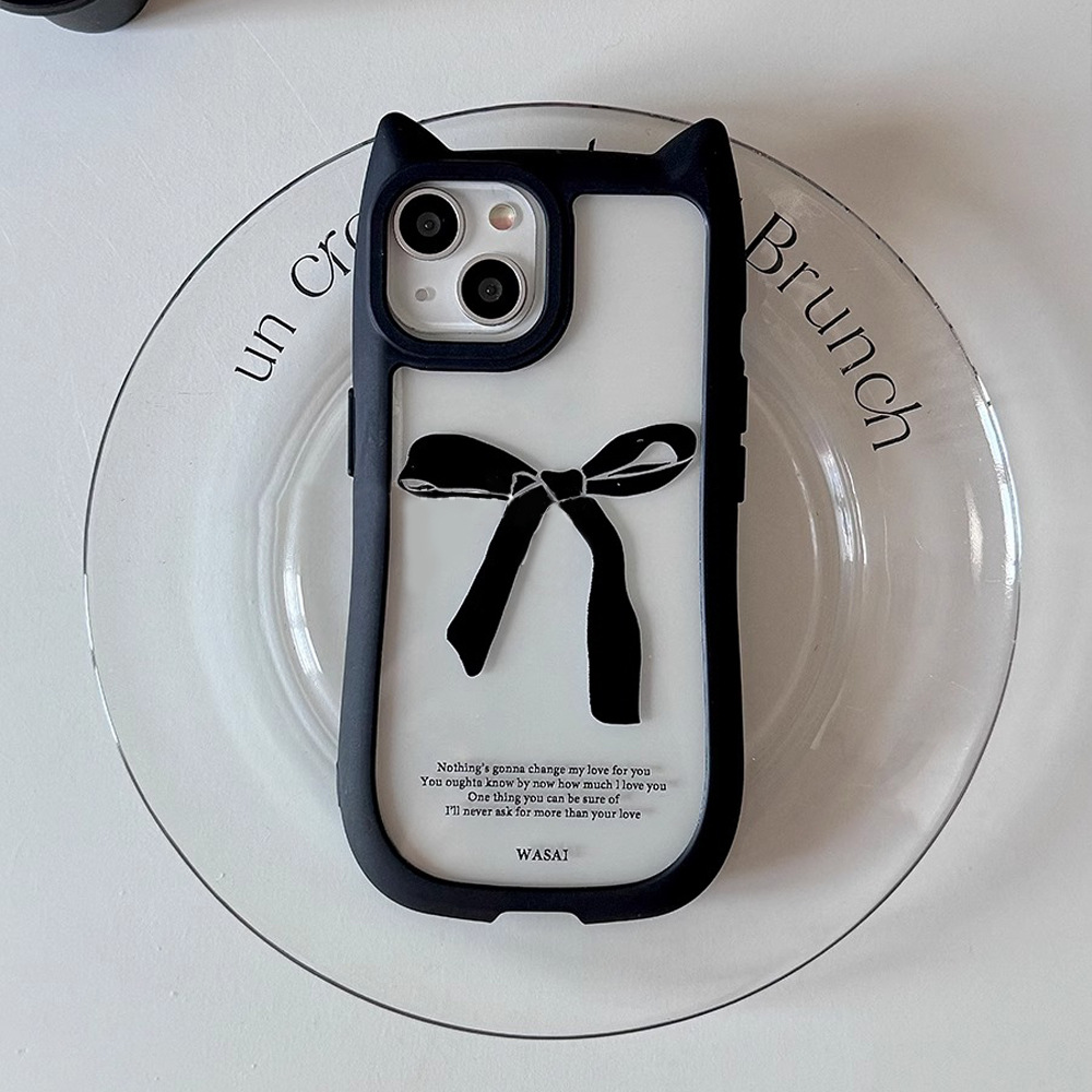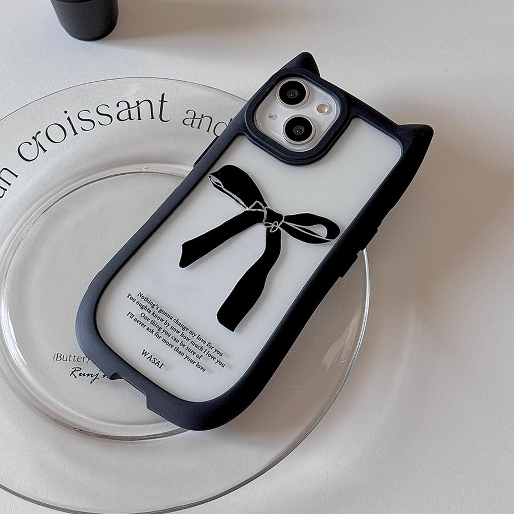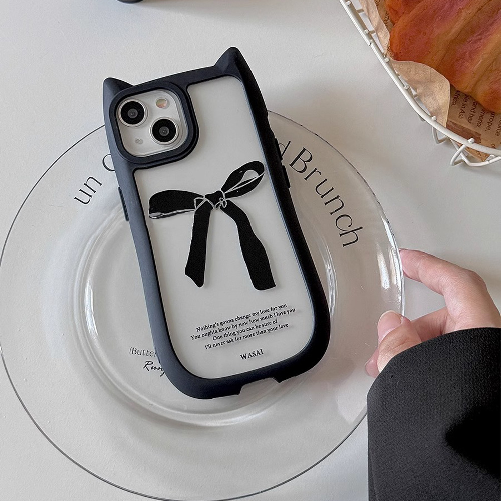 韩国ins小众猫耳朵黑色蝴蝶结适用iphone15苹果14手机壳13promax