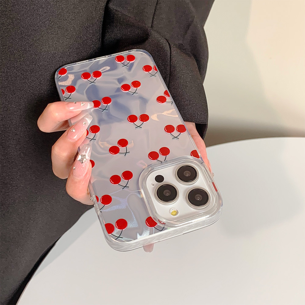 水波纹imd满屏樱桃iPhone14苹果保护套15promax手机壳11软边12pro