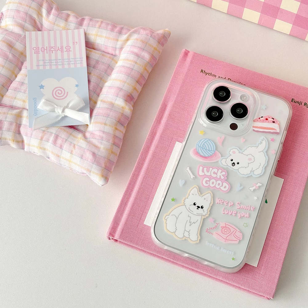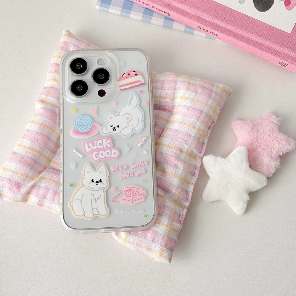 小白狗透明手机壳11苹果iPhone15ProMax卡通14可爱XR防摔13适用12