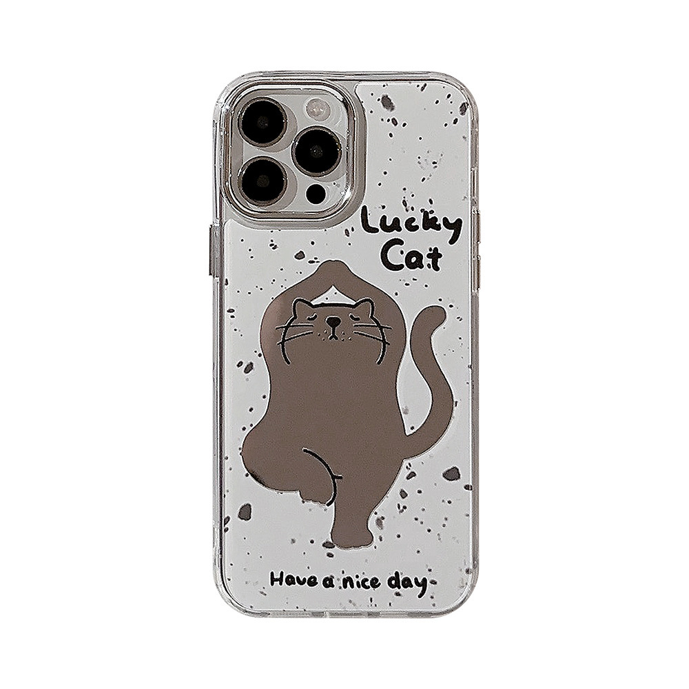 电镀镜面iPhone14适用15promax苹果手机壳11搞怪卡通13瑜伽猫咪12