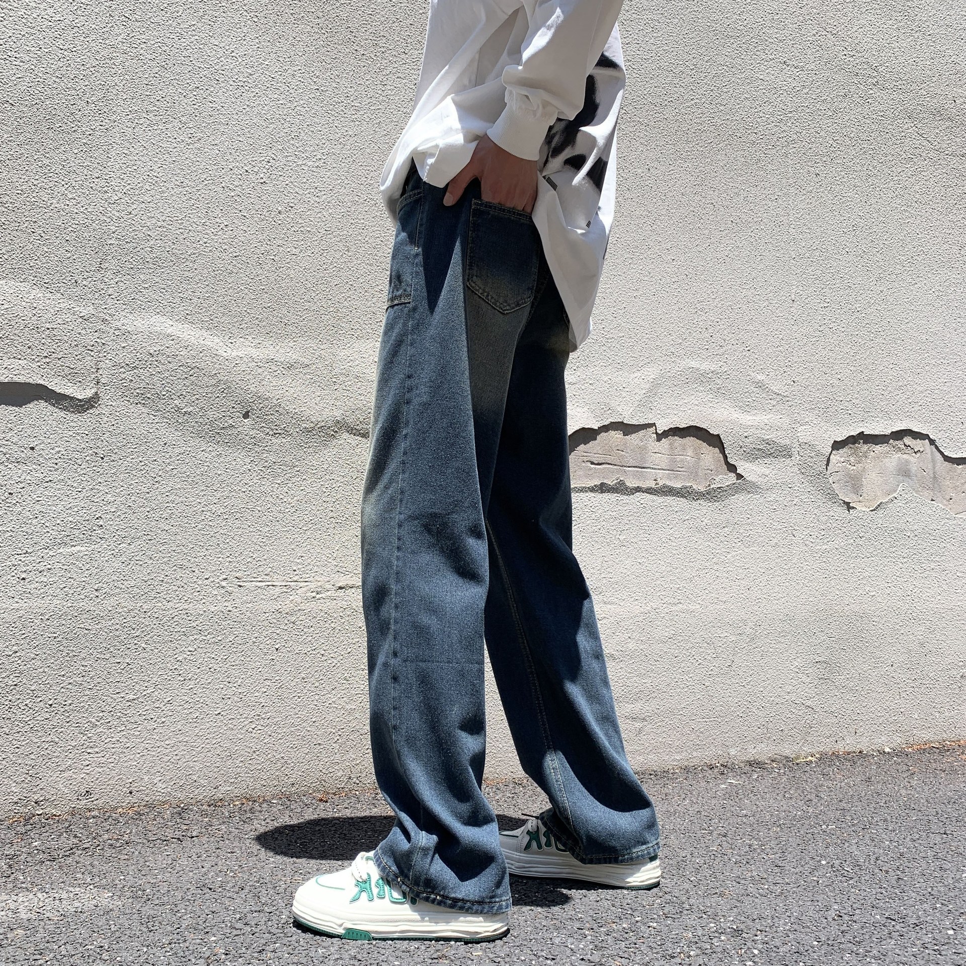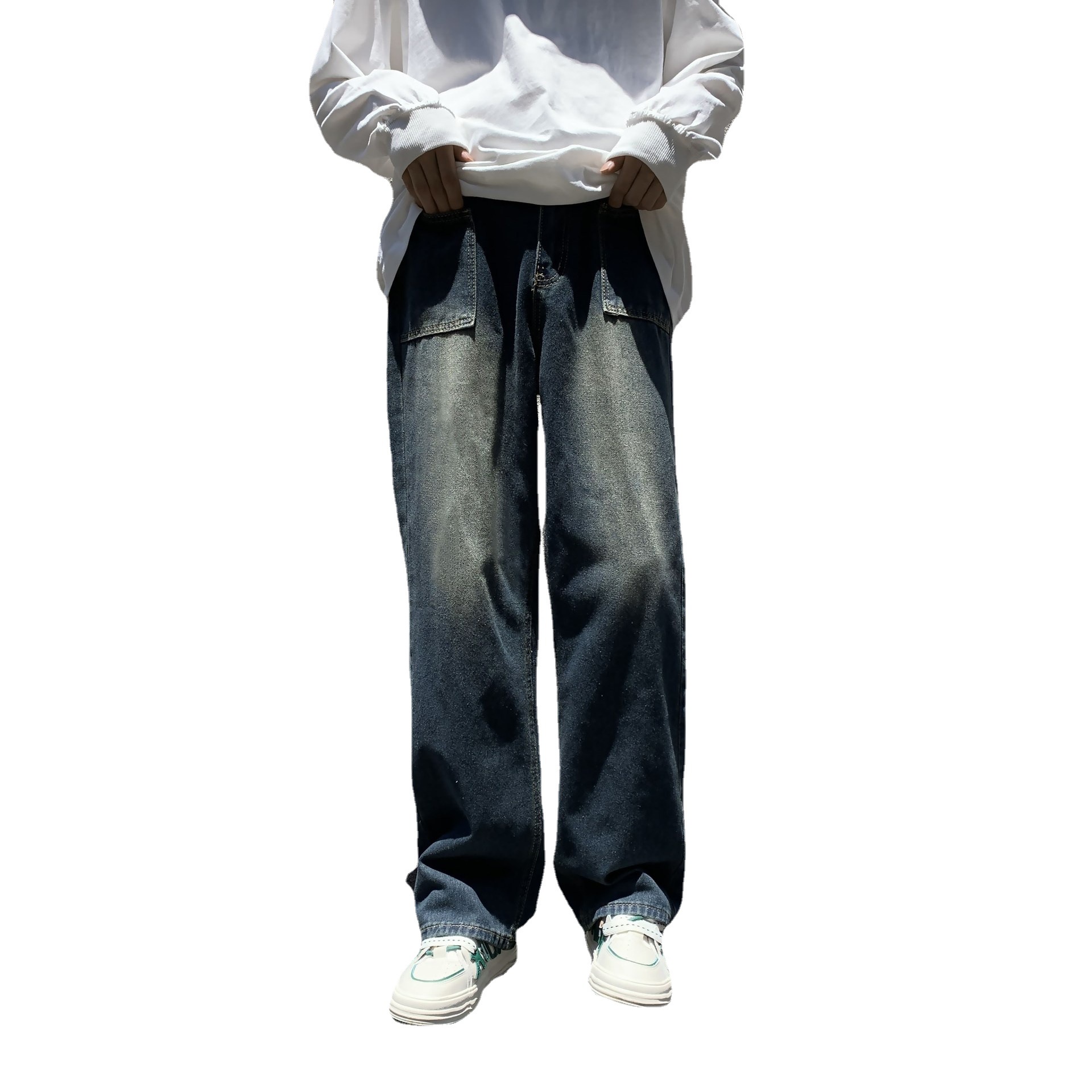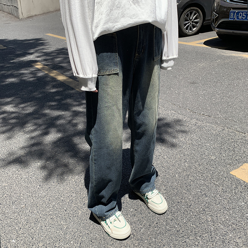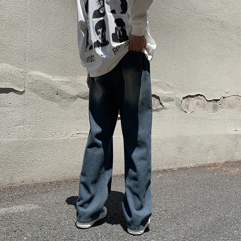 牛仔裤男美式复古宽松直筒阔腿长裤秋冬高街vibe水洗做旧拖地裤子