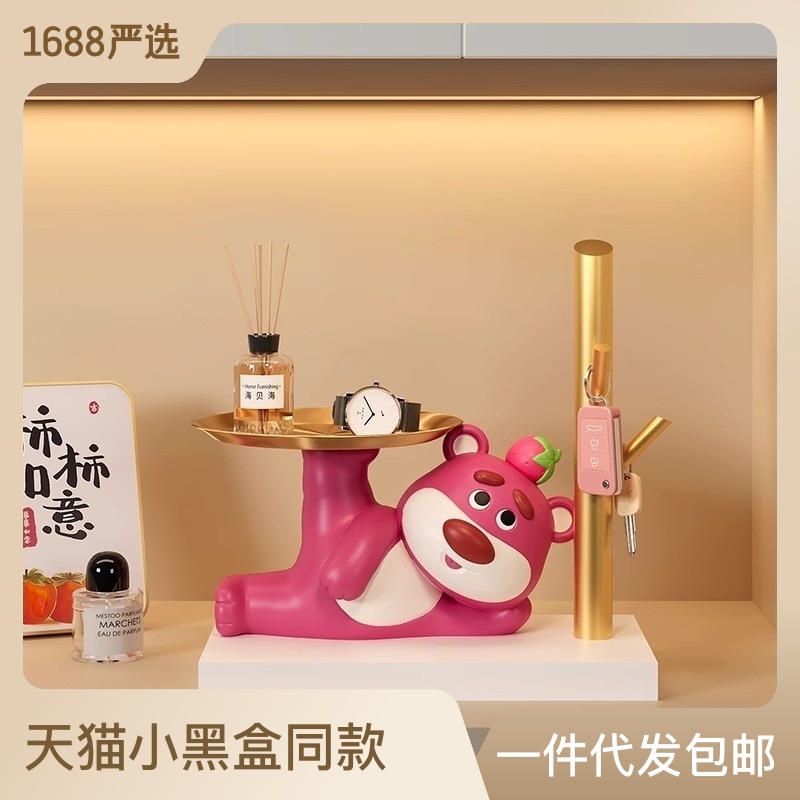 草莓熊钥匙收纳玄关摆件家居入户门口鞋柜客厅装饰品乔迁新居礼品