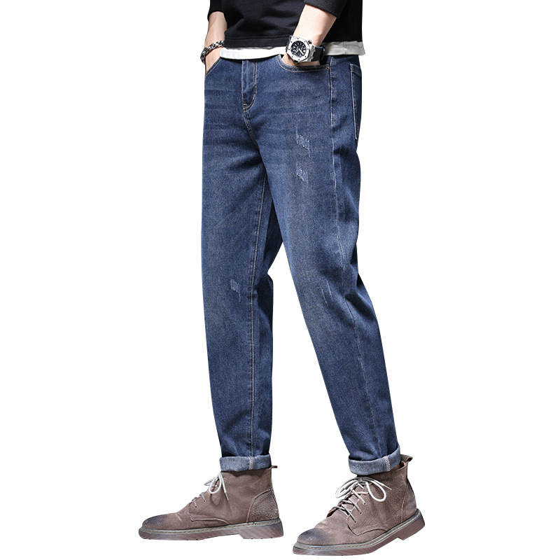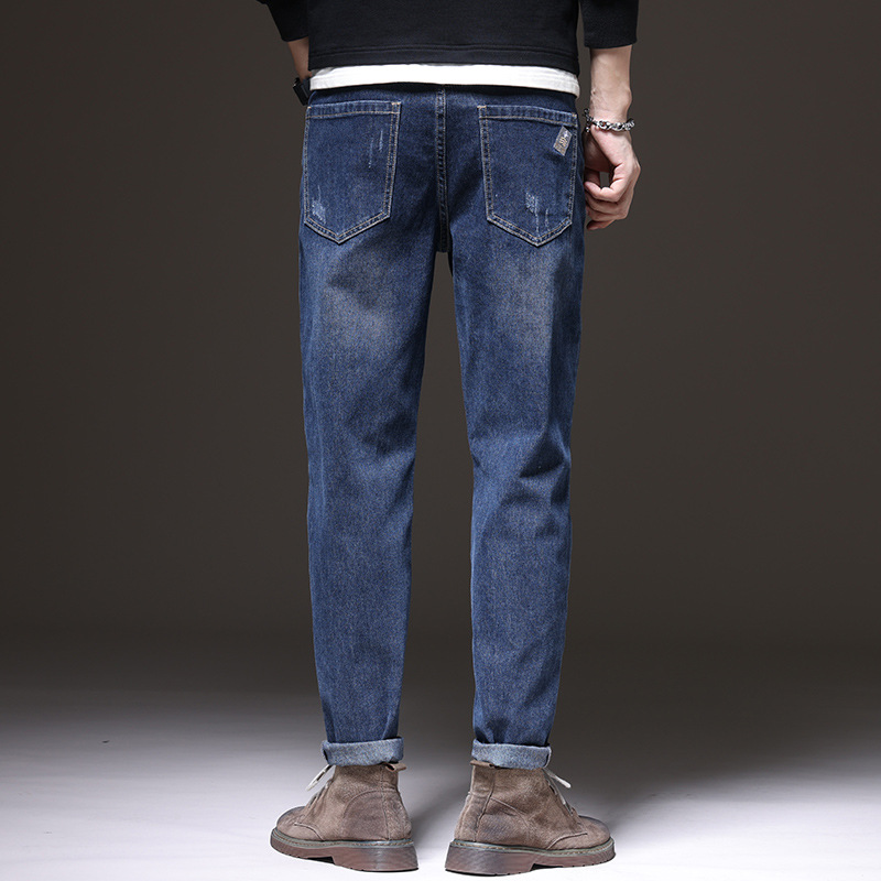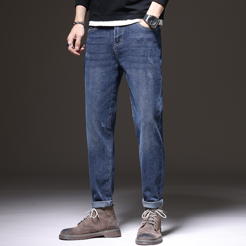 春夏款小直筒牛仔裤男弹力修身休闲百搭青年长裤街潮斜纹耐穿男裤