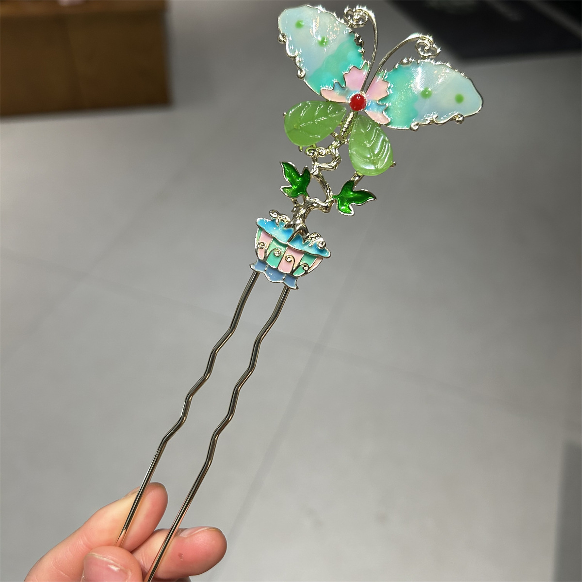 新中式古风画油蝴蝶U型发簪女时尚高级感时尚蝴蝶发钗