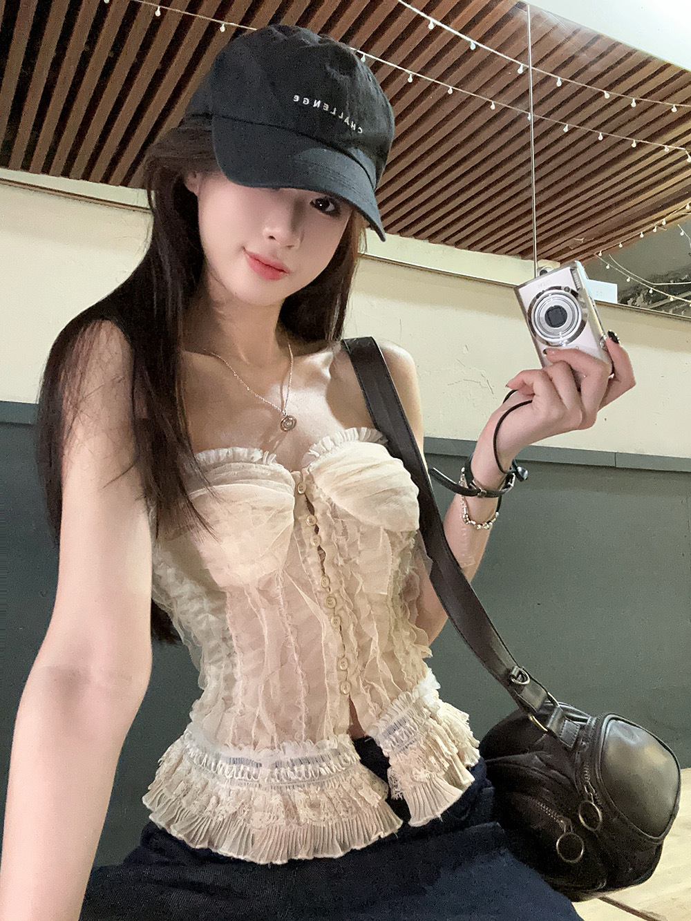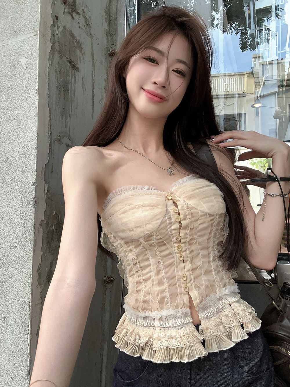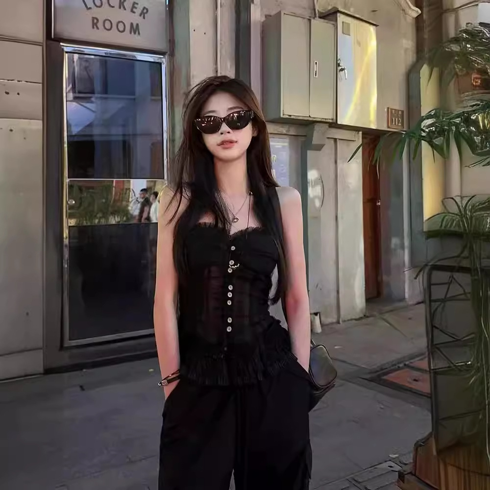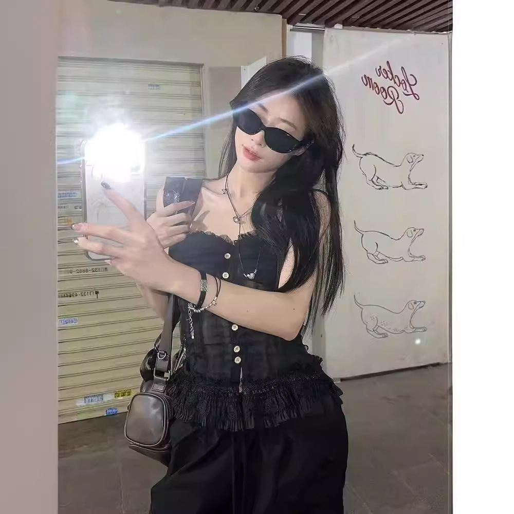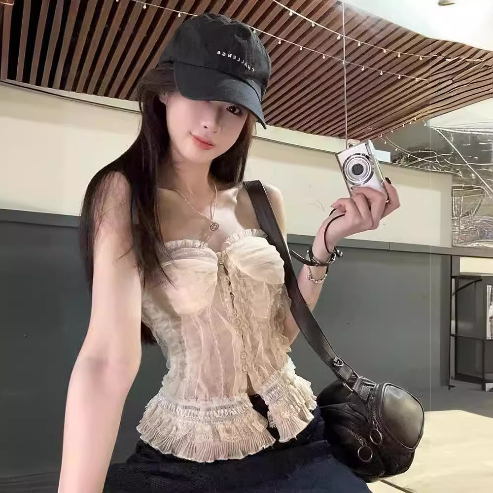 蕾丝花边抹胸吊带背心女夏季新款法式复古修身显瘦宫廷风无袖上衣