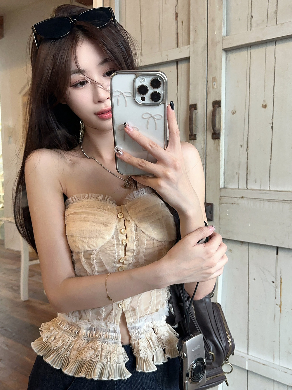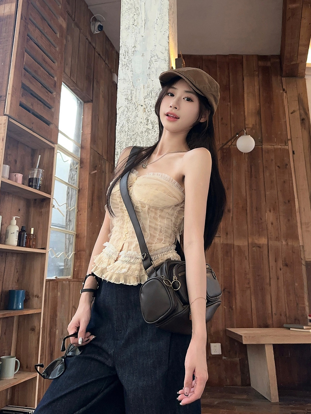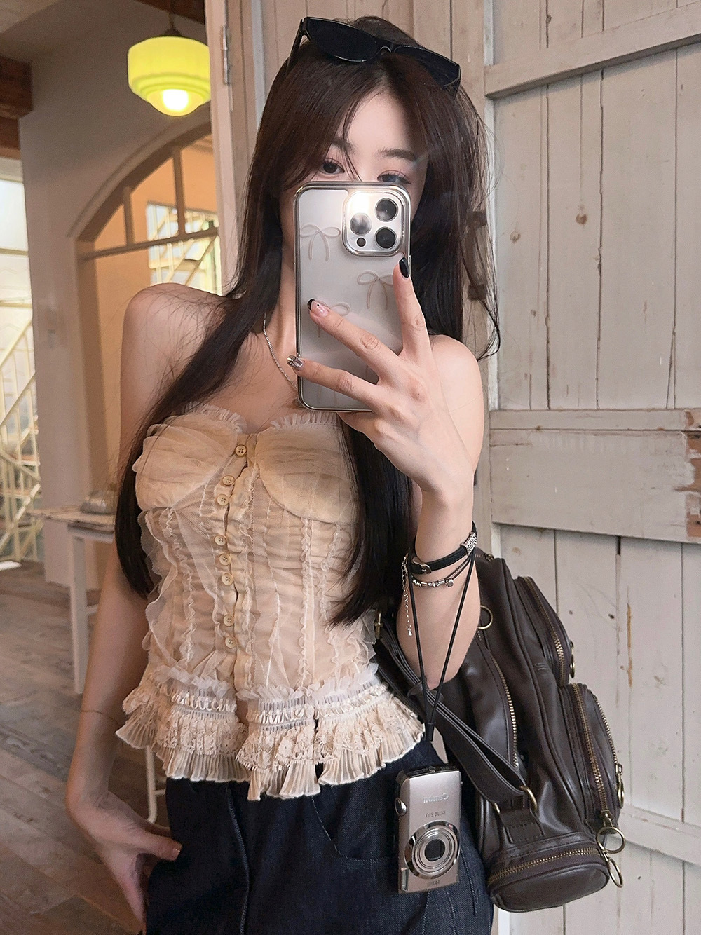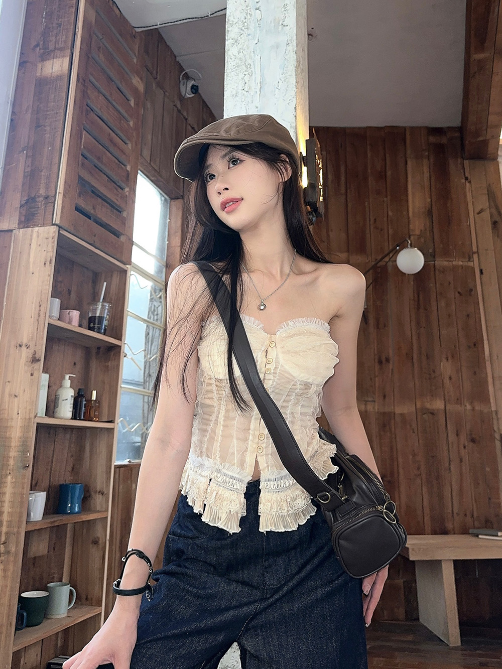 蕾丝花边抹胸吊带背心女夏季新款法式复古修身显瘦宫廷风无袖上衣