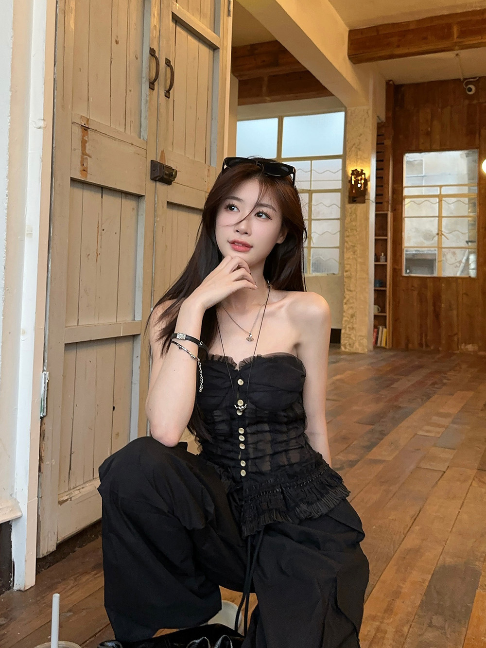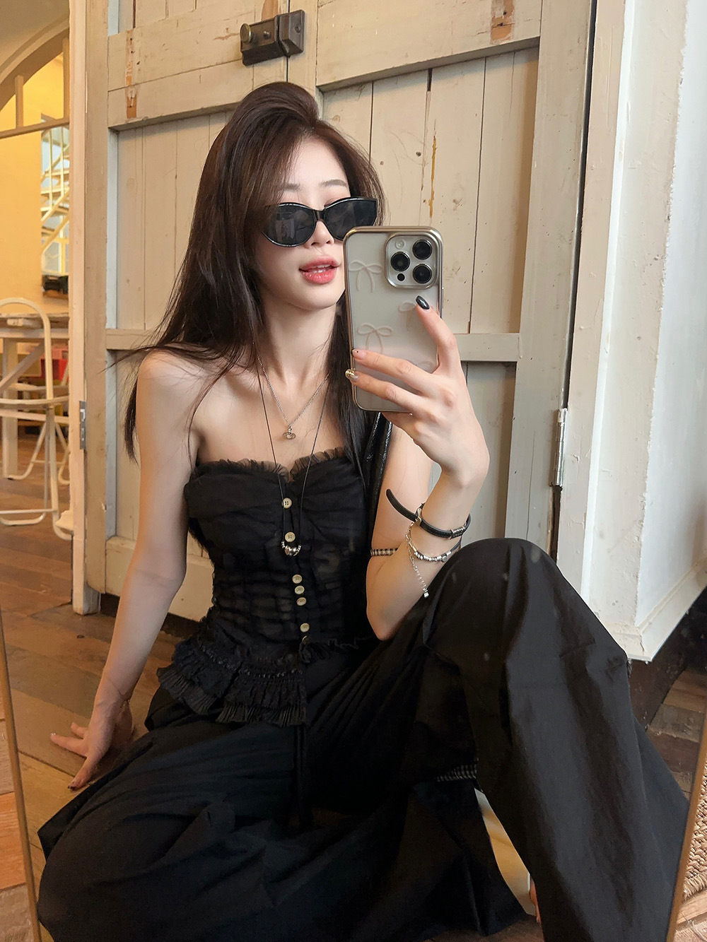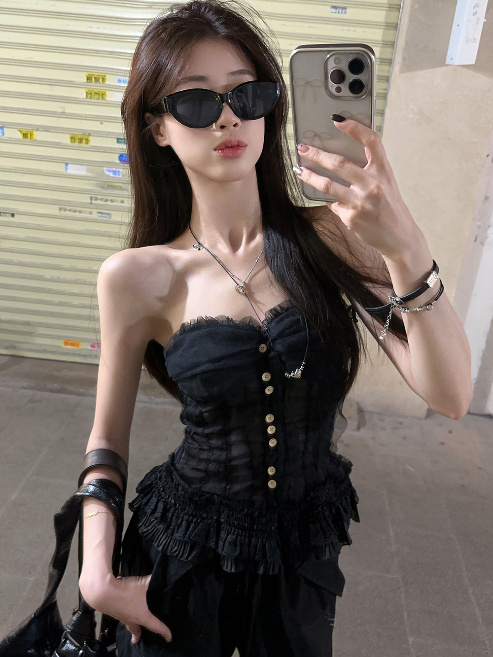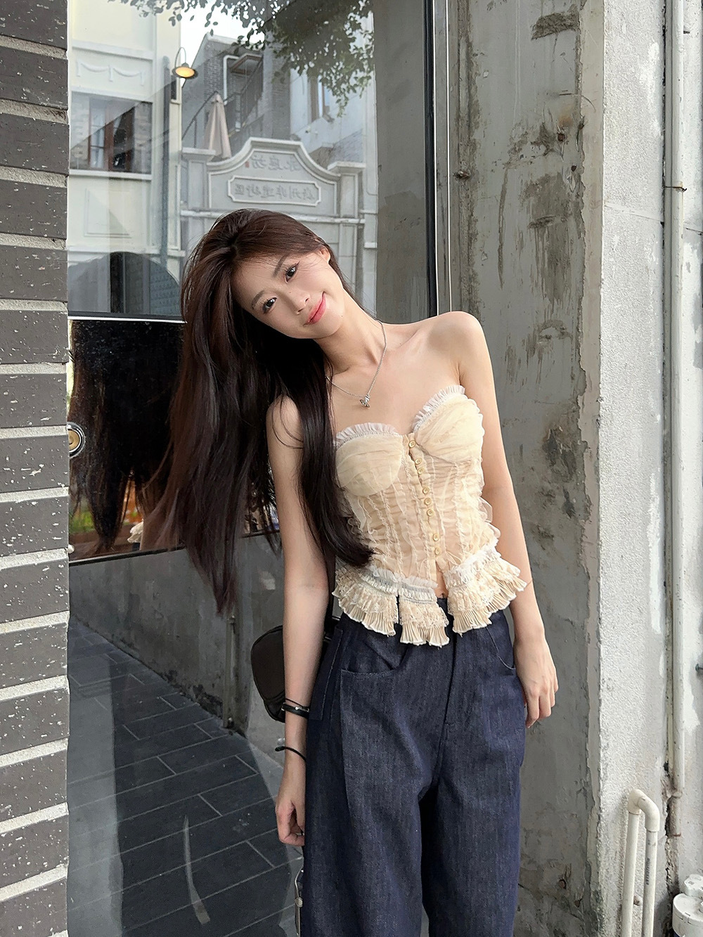 蕾丝花边抹胸吊带背心女夏季新款法式复古修身显瘦宫廷风无袖上衣